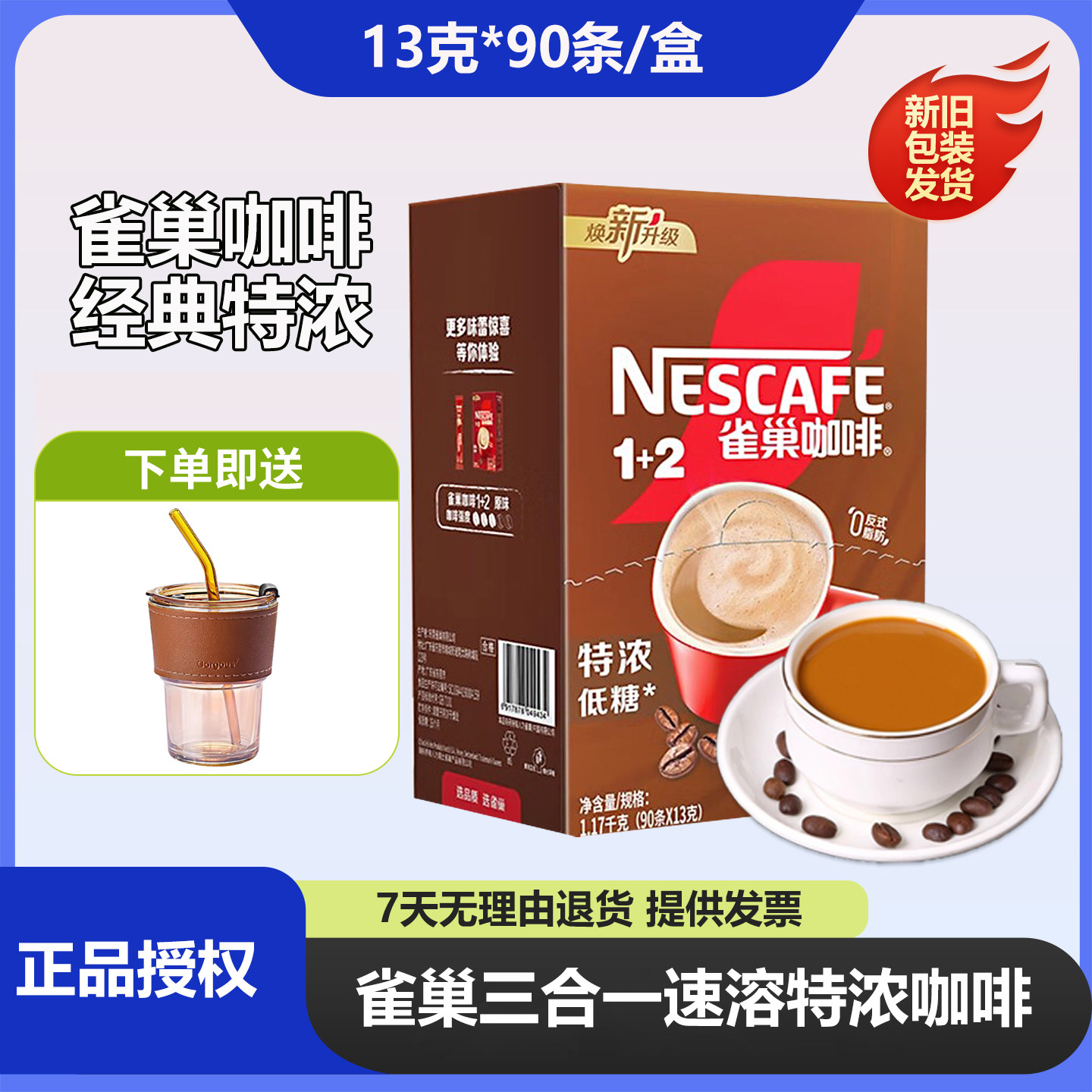 雀巢正品学生咖啡特浓三合一速溶咖啡粉办公提神官方授权店90条