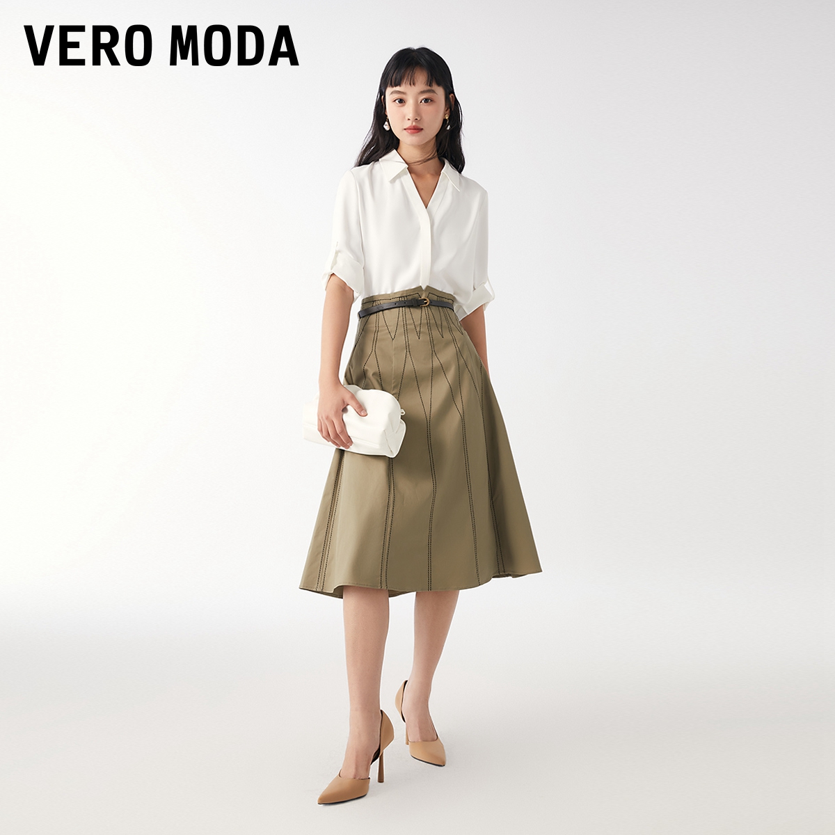 tq区绫致Vero Moda半身裙A字中长迷笛纯色高腰简约通勤女时尚