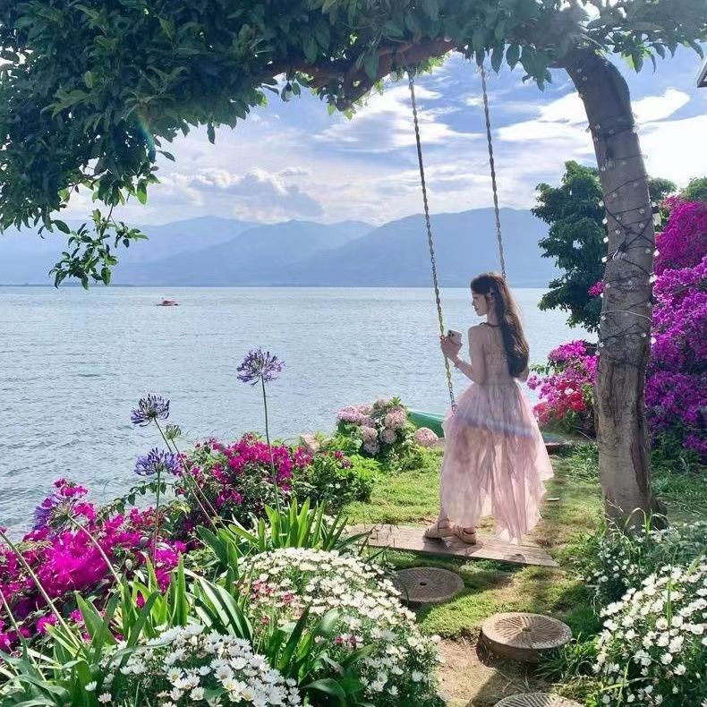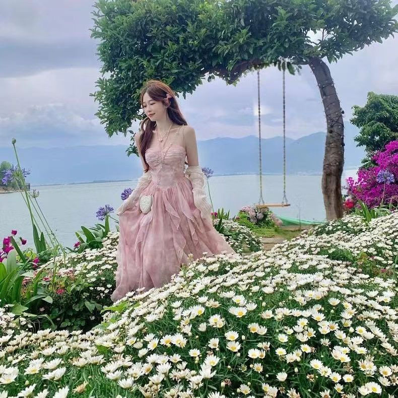 夏新款设计感法式超仙女风不规则海边度假沙滩长裙碎花吊带连衣裙