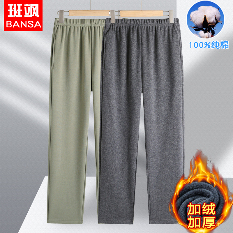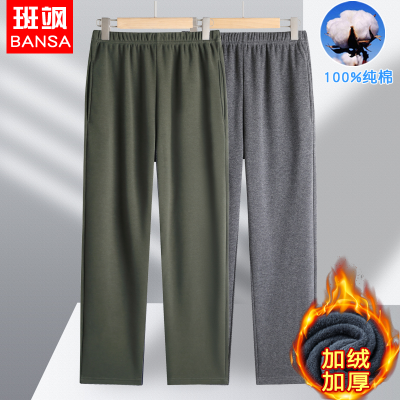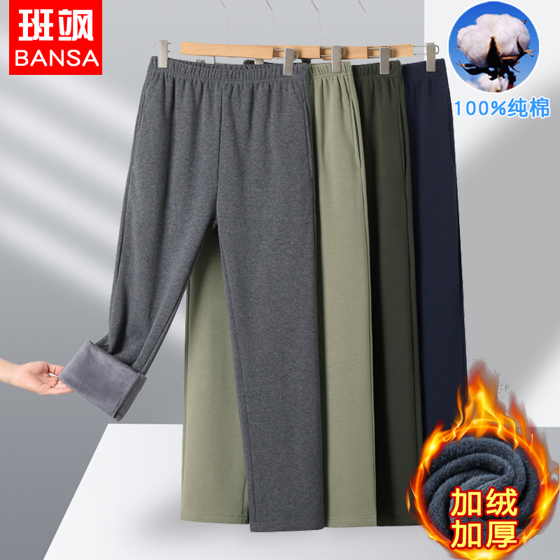 中老年人男加绒加厚纯棉裤子保暖直筒长裤运动休闲裤爸爸装