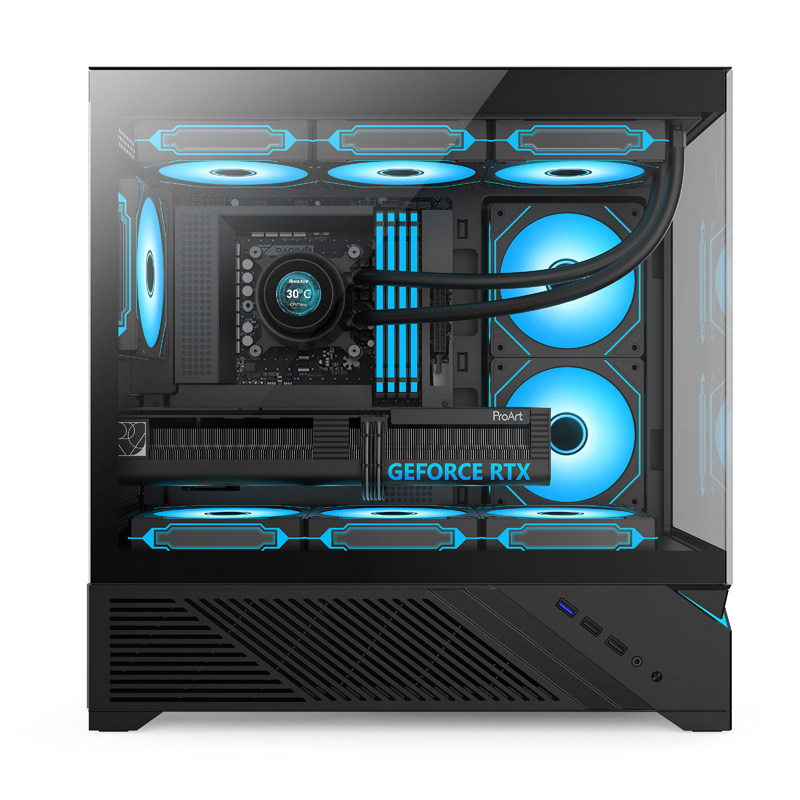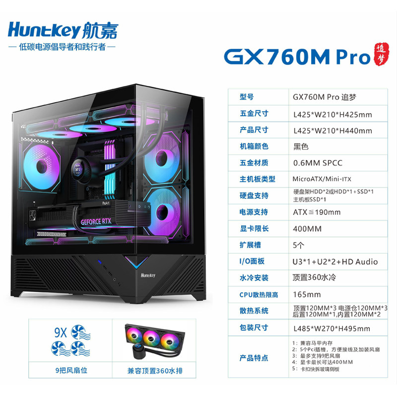 航嘉机箱GX760M Pro追梦台式机主机水冷箱MATX无立柱黑白色长显卡