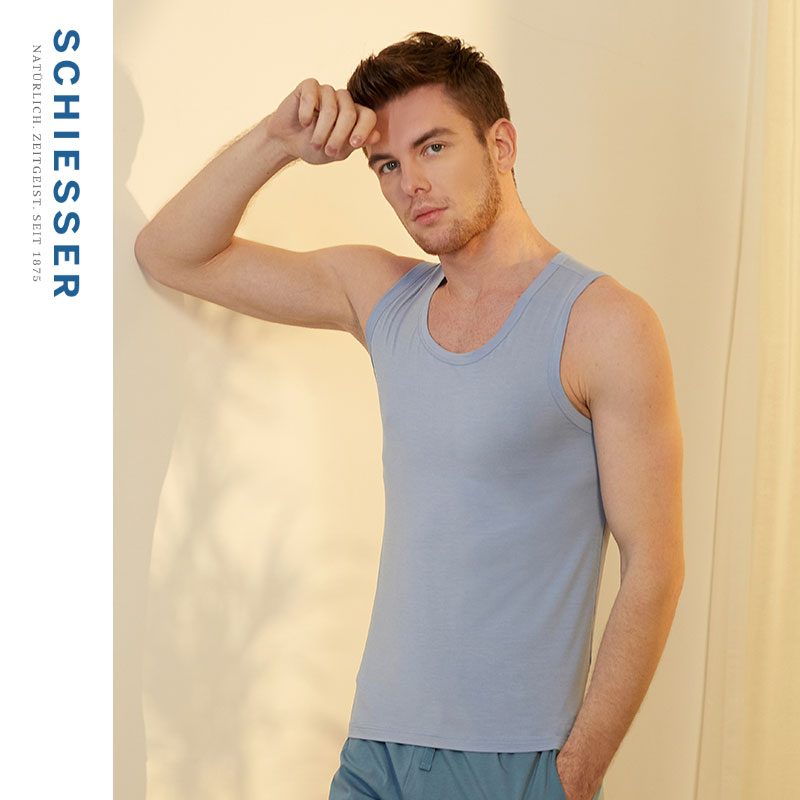 SCHIESSER舒雅男士莫代尔桑蚕丝3A抗菌柔软顺滑打底背心19132V