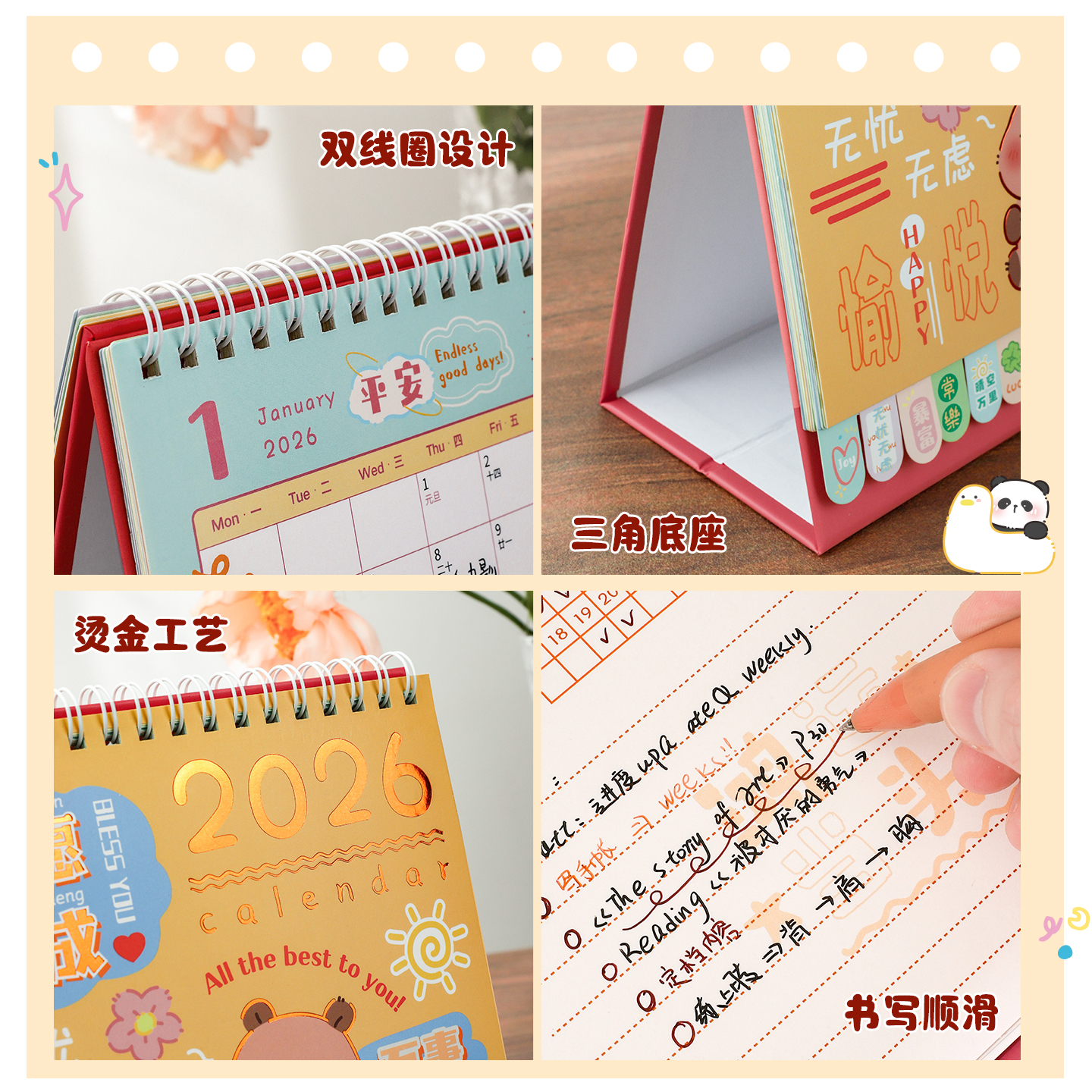 2026年迷你小日历学生用备忘录记事台历本学习打卡全年月历办公室创意桌面小台历幼儿园儿童卡通可爱小号日历