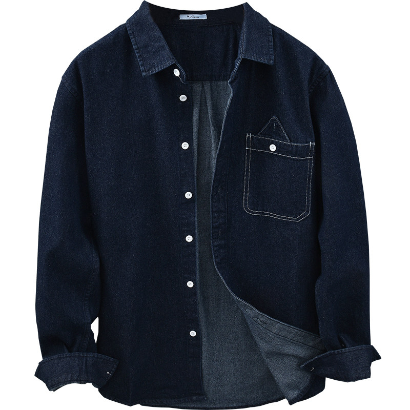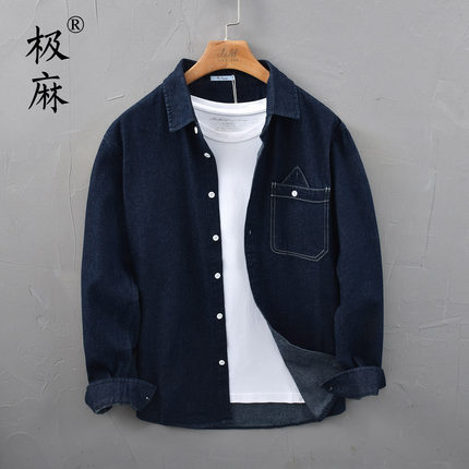 极麻复古水洗百搭牛仔长袖衬衫男士秋季日系文艺休闲舒适宽松衬衣