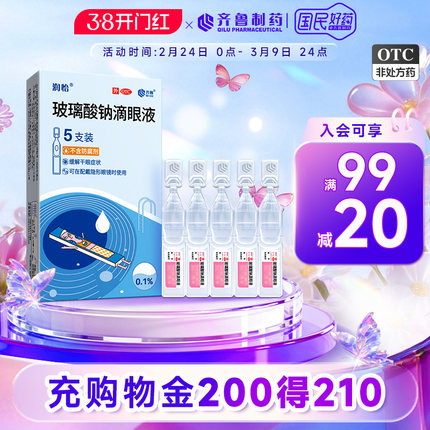 润怡玻璃酸钠滴眼液5支眼药水眼干人工泪液眼泪滴眼药干眼症齐鲁