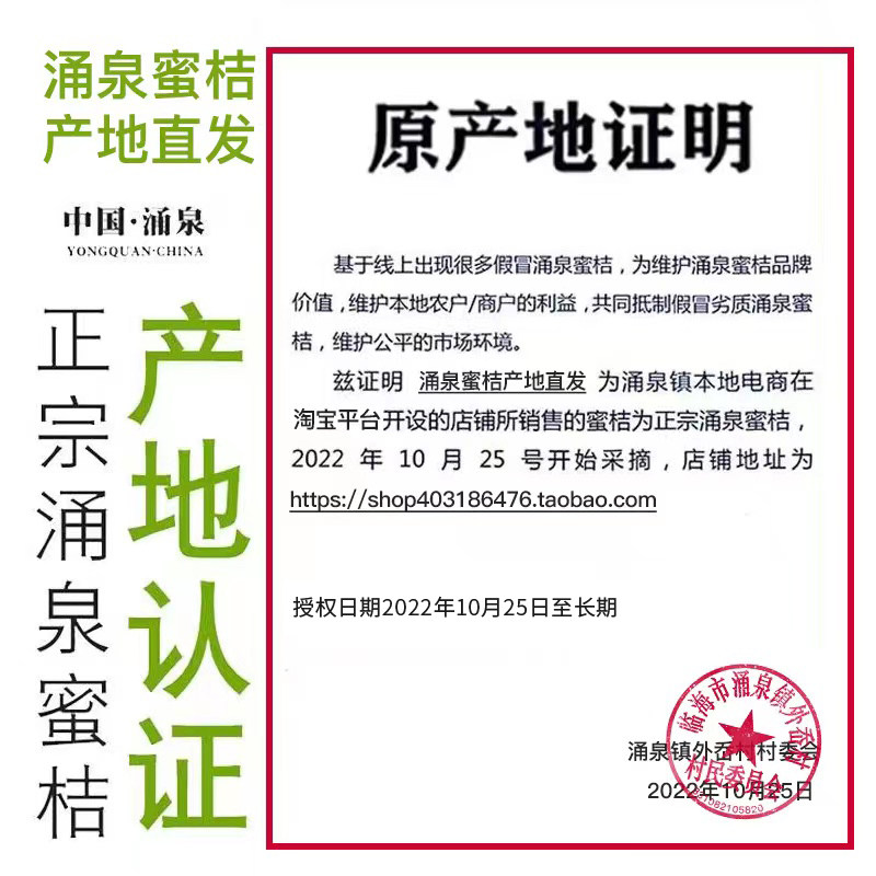 浙江临海涌泉蜜桔当季新鲜水果无核蜜桔10斤整箱正宗官方旗舰店