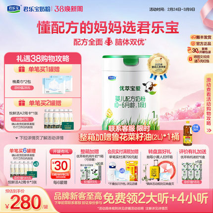 君乐宝官方旗舰店优萃宝爱1段婴儿配方牛奶粉一段800g*1罐