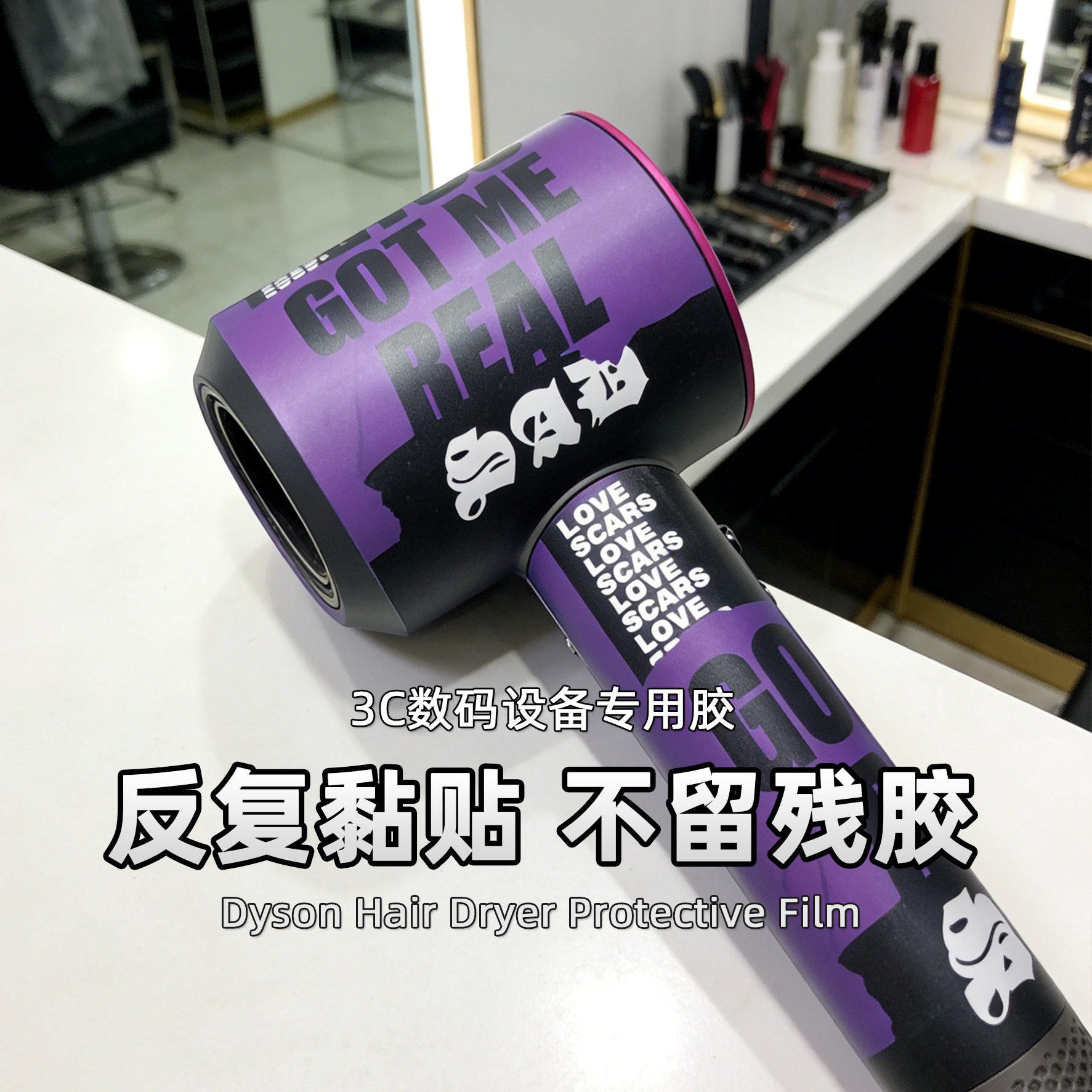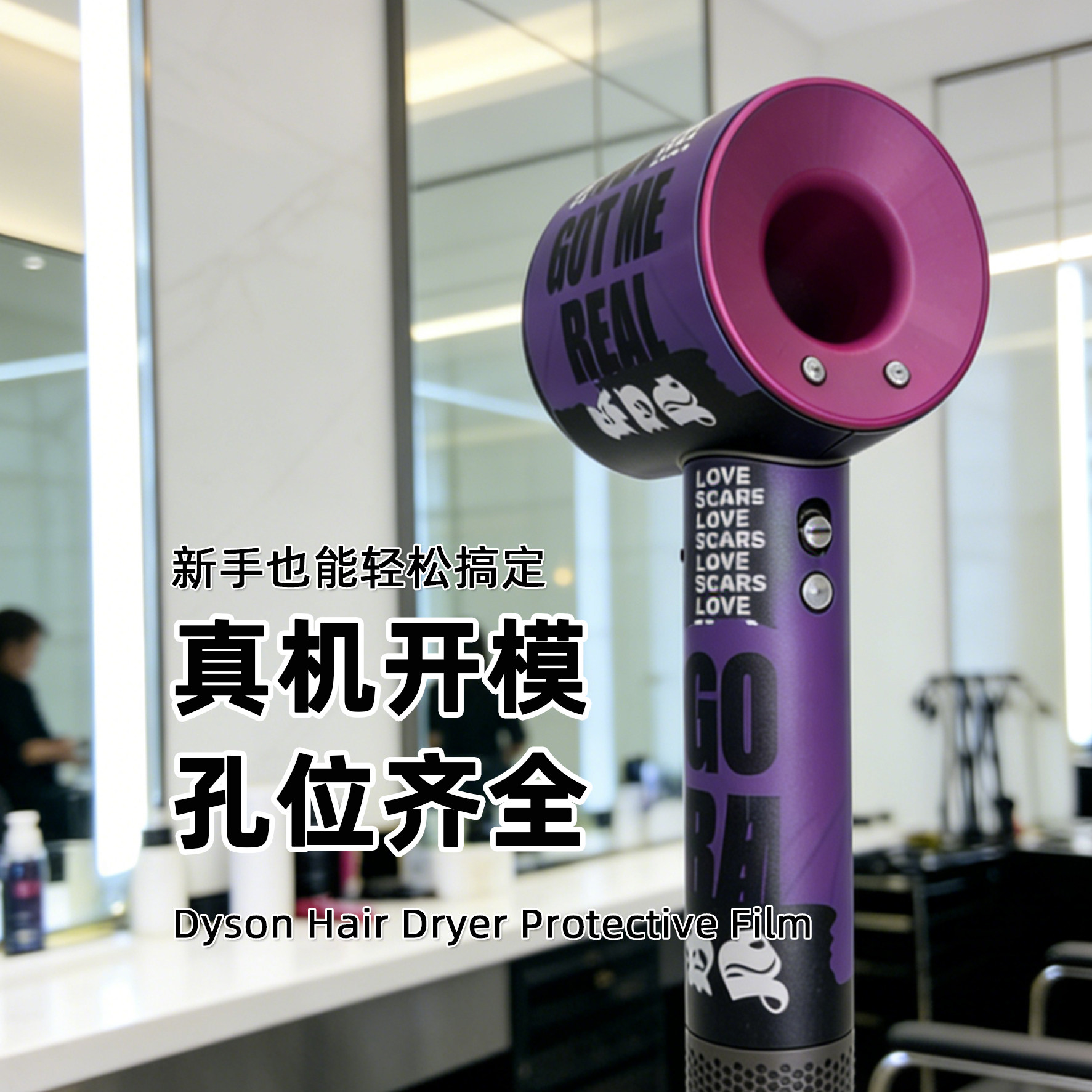适用戴森吹风机贴膜不留胶孔位全