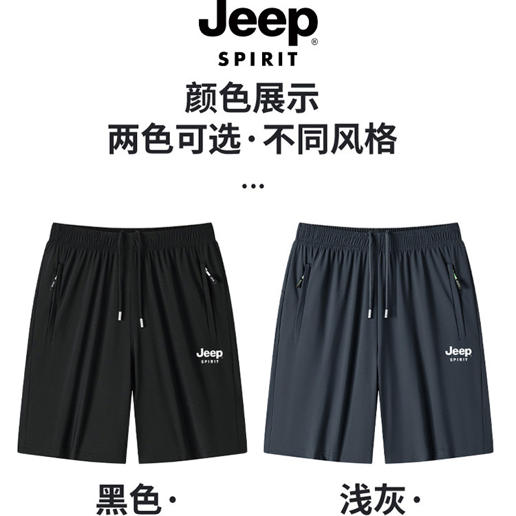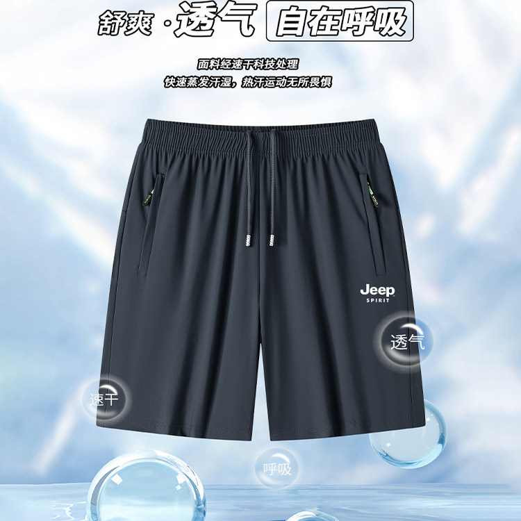 吉普JEEP冰丝运动短裤男士夏季薄款宽松大码加肥加大休闲五分裤男