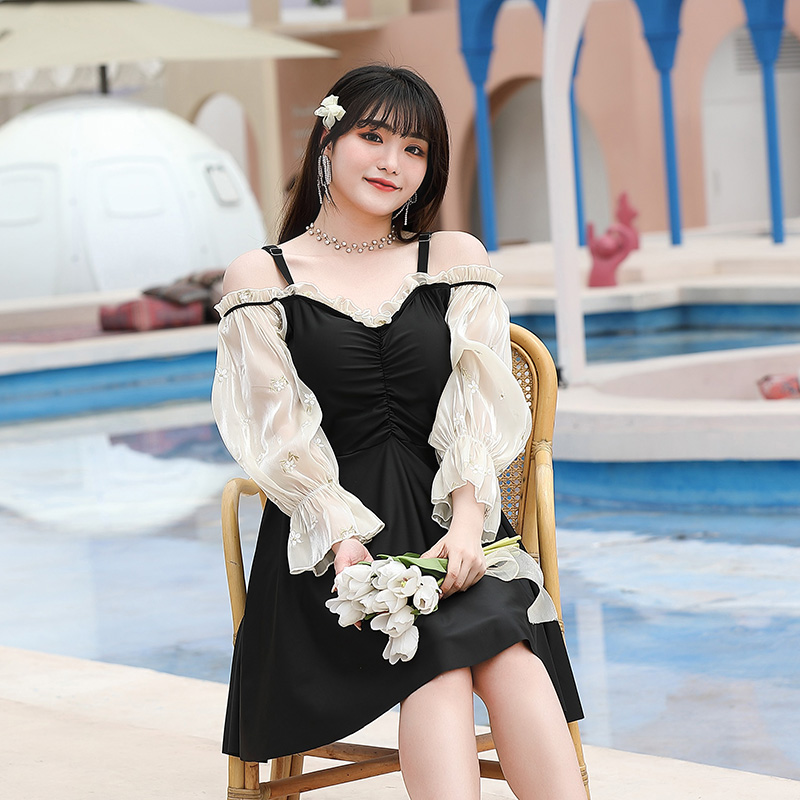 加肥特大码泳衣女胖mm200斤保守连体遮肚显瘦250防嗮长袖仙女300