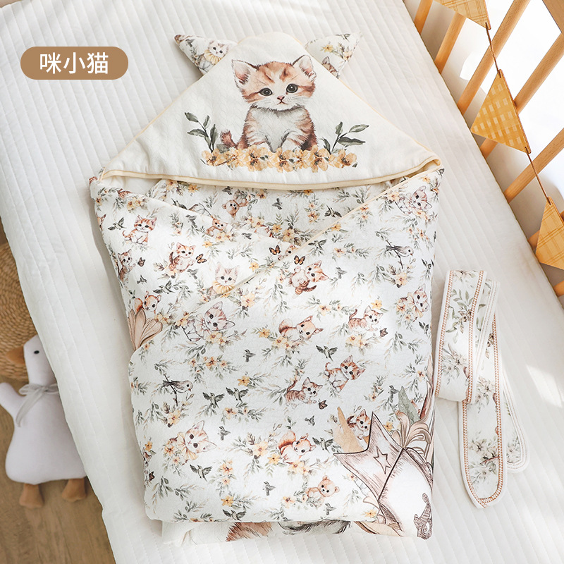 婴儿抱被纯棉春秋季新生儿产房包被外出防风襁褓抱毯秋冬加厚款