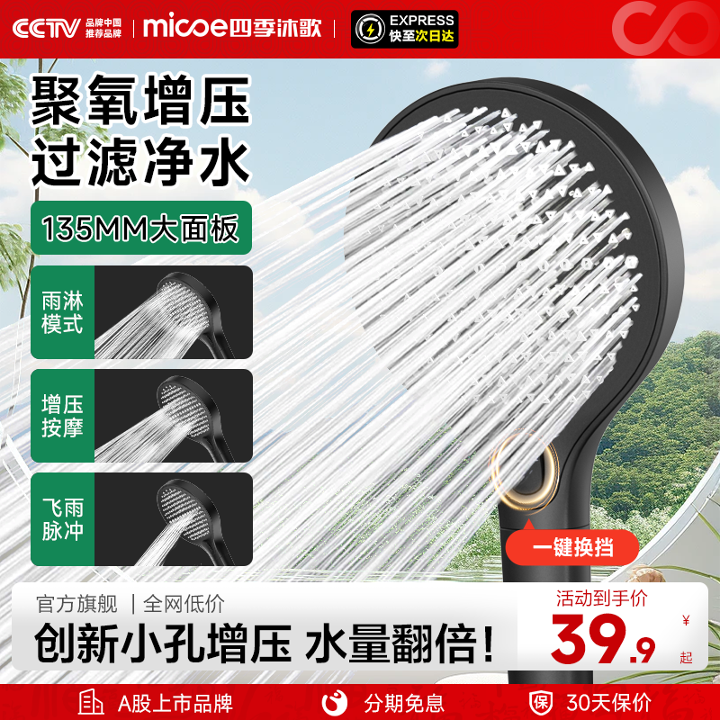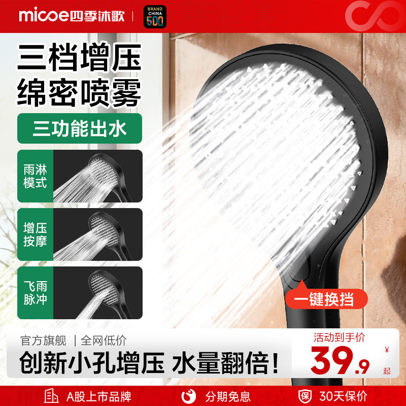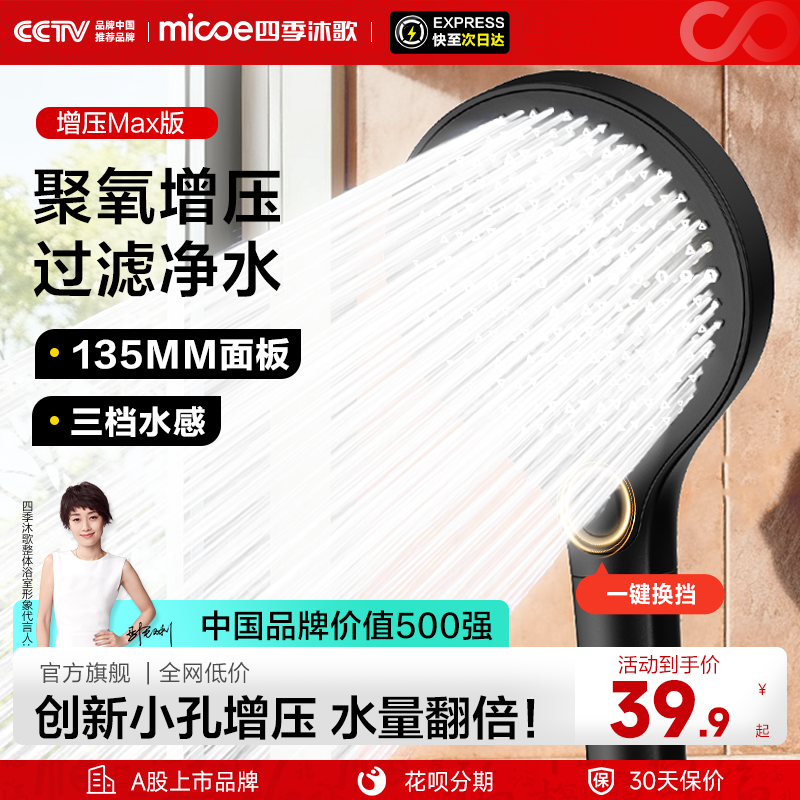 四季沐歌卫浴增压淋浴头手持花洒喷头过滤洗澡家用浴室莲蓬头套装