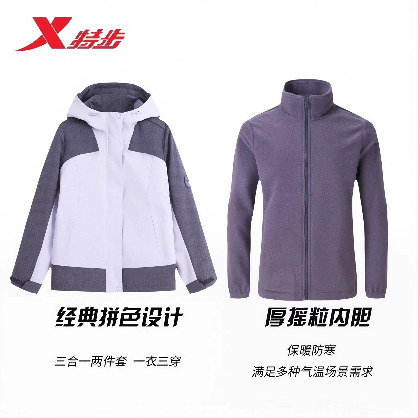 特步冲锋衣外套女2025冬款三合一两件套三防连帽风衣975428660081
