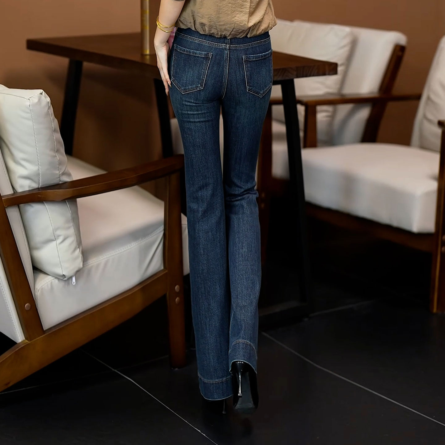 百搭修身牛仔喇叭裤女2025春秋季新款爆款高腰窄版长裤垂感直筒裤