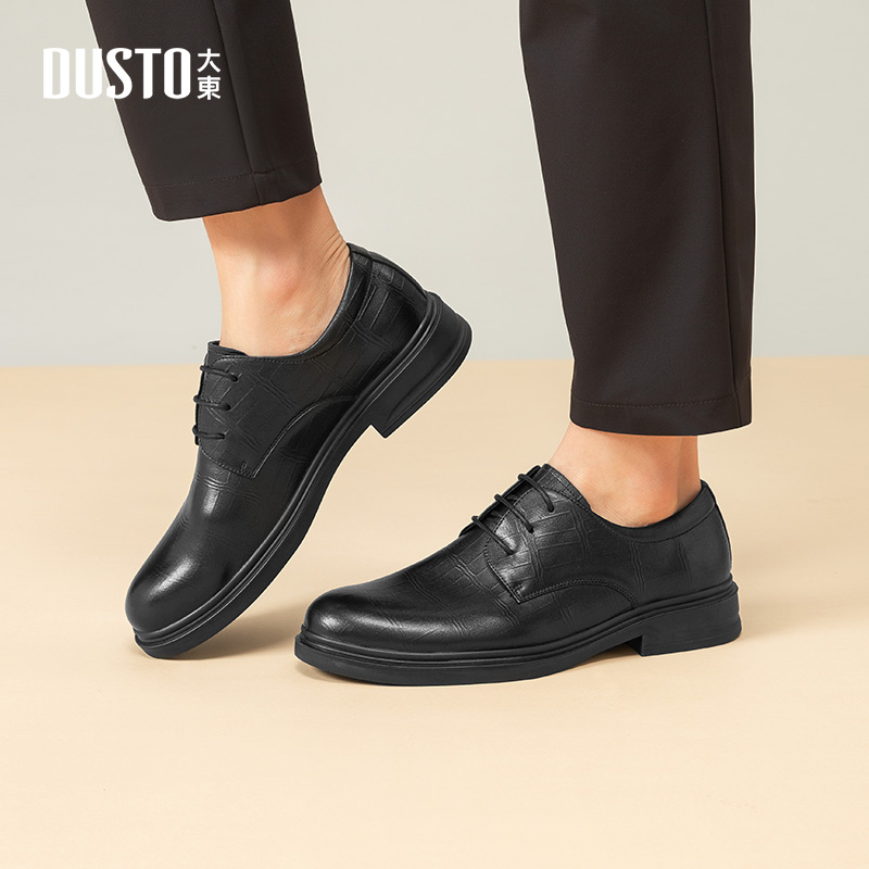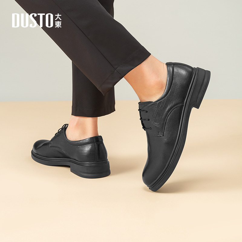 大东商务正装鞋男鞋2025春秋季新款简约粗跟中跟圆头系带Q0628