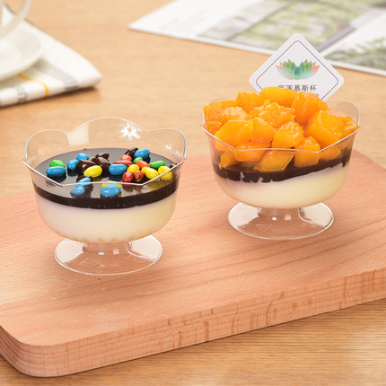 高脚慕斯杯布丁冰淇淋杯儿童手工泥杯茶歇甜品杯PS塑料加厚塑料杯