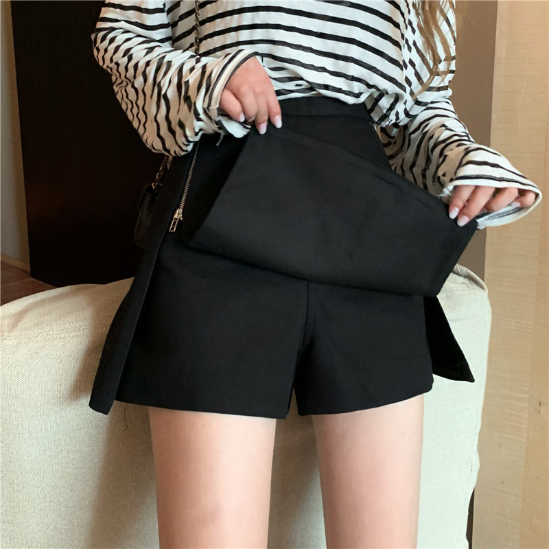 大码西装短裤女高腰胖mm宽松显瘦外穿a字阔腿休闲裤遮胯开叉裙裤