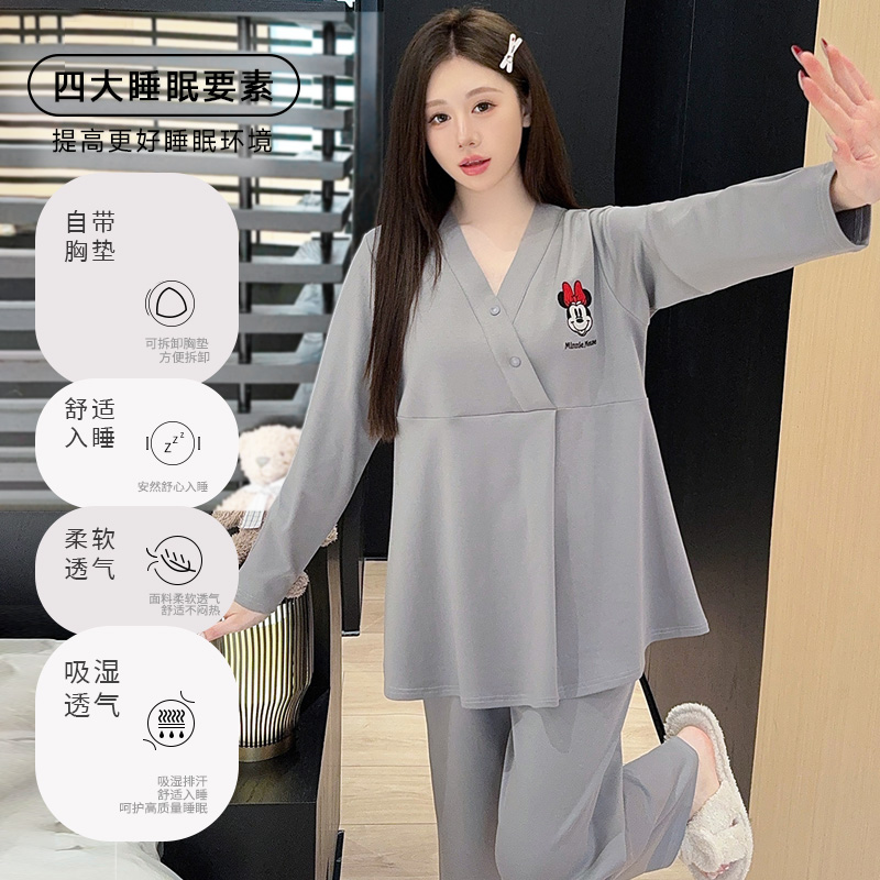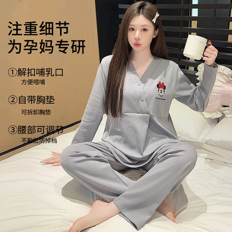 带胸垫月子服孕妇冬纯棉12月份产后产妇哺乳睡衣秋冬季加厚家居服