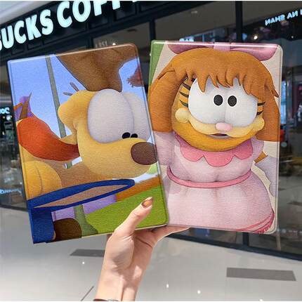 加菲猫欧弟华为平板matepad11保护套v8pro壳m6带笔槽x8荣耀9三折8vivopadair小米6六5pro适用6s红米se2023五