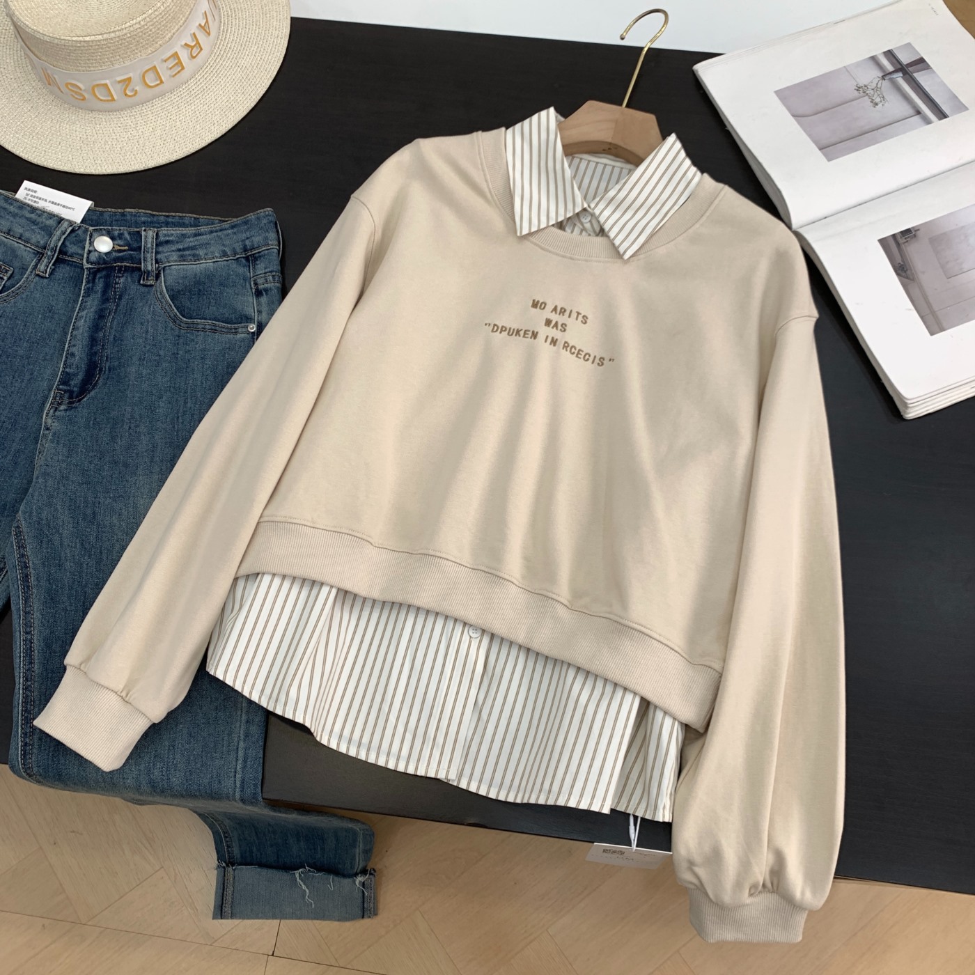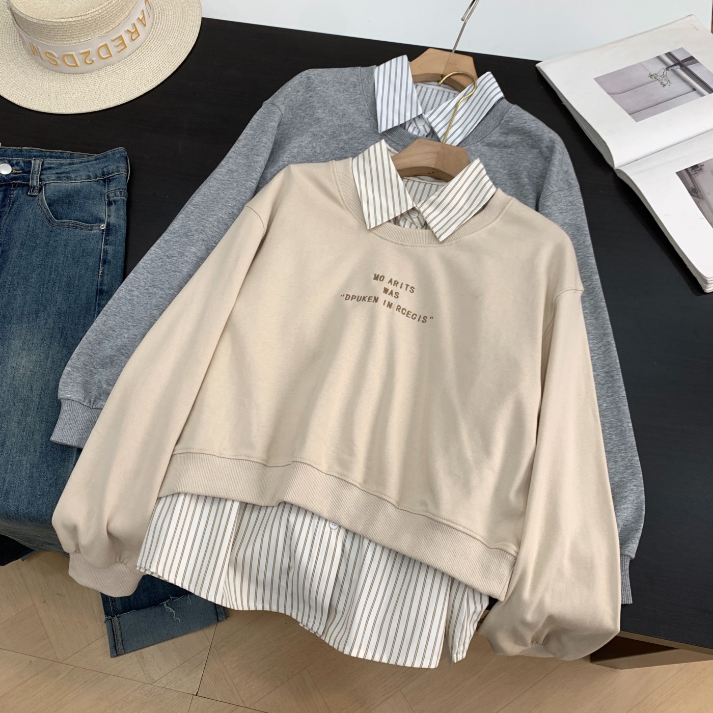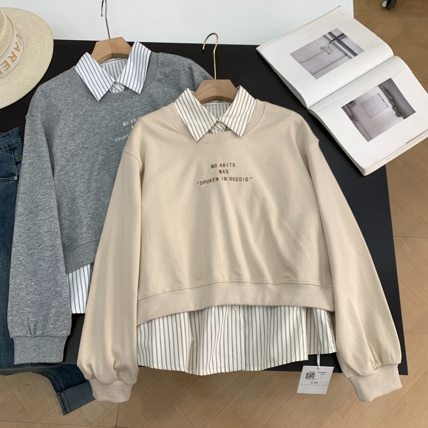 【楠】两件套外搭长袖圆领宽松新款秋季卫衣内搭无袖条纹衬衫女