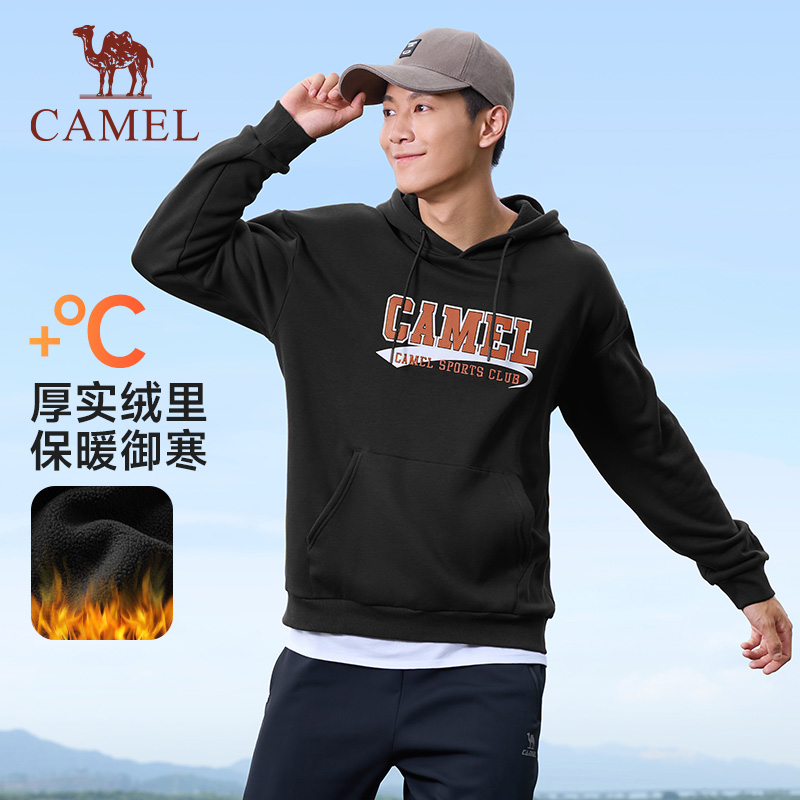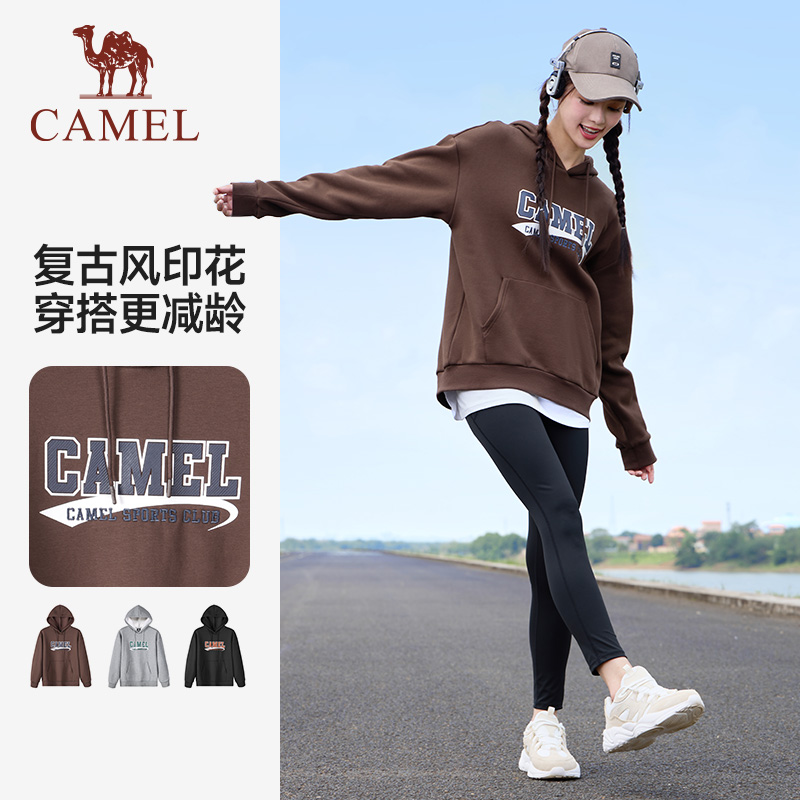 骆驼运动卫衣男女薄绒2025春季新款套头衫长袖宽松情侣连帽卫衣潮