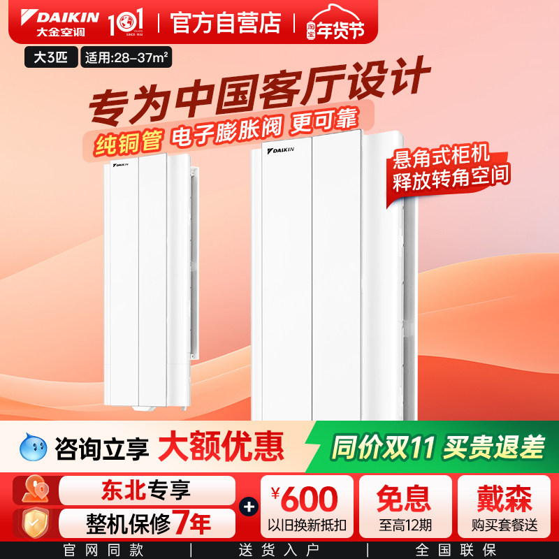【东北专享】大金空调官方旗舰挂机大1.5匹336变频3匹372柜机省电