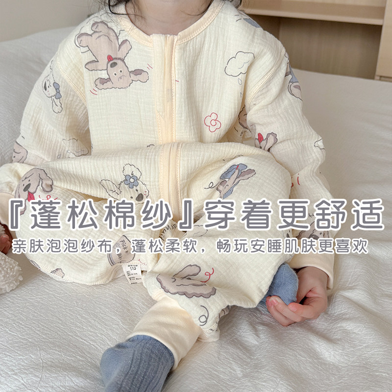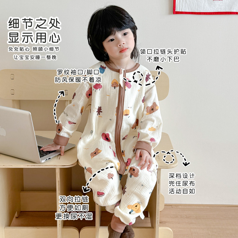 春夏季儿童连体睡衣纯棉纱布睡袋