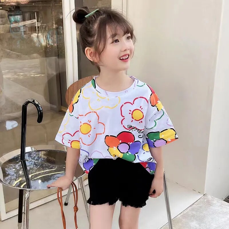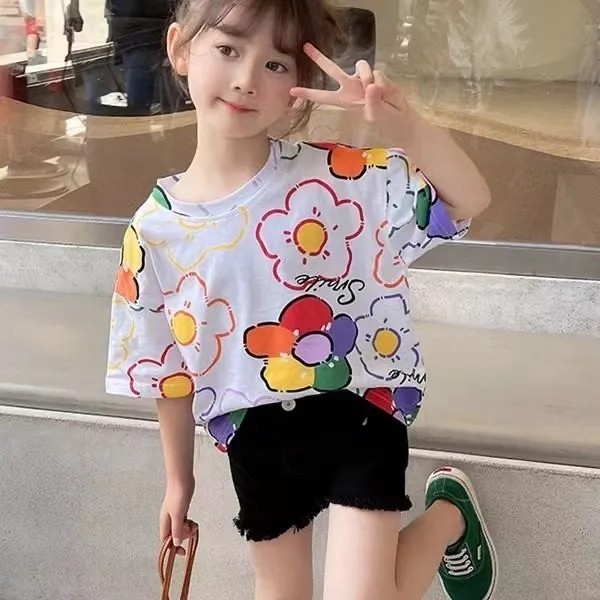 女宝纯棉短袖2024女宝夏装爱心上衣时尚女童t恤洋气小女孩打底衫