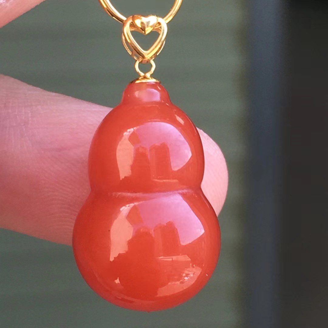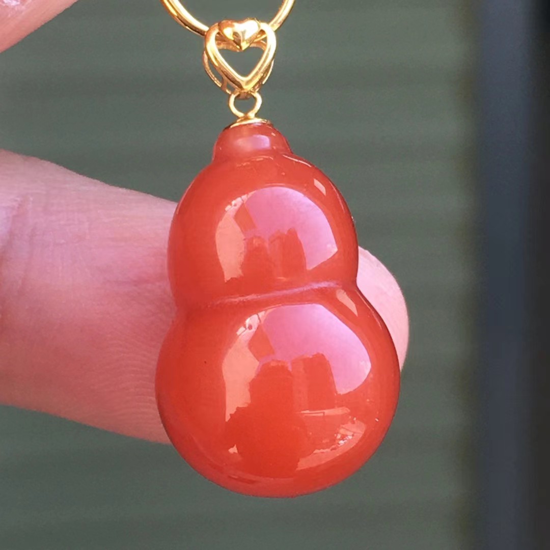 凉山天然南红玛瑙樱桃红镶嵌葫芦吊坠胸坠毛衣链项链
