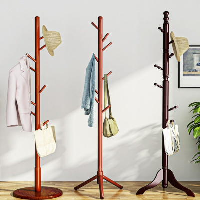 家用简易的单杆式衣服架子立式挂包架挂衣架落地 卧室实木衣帽架