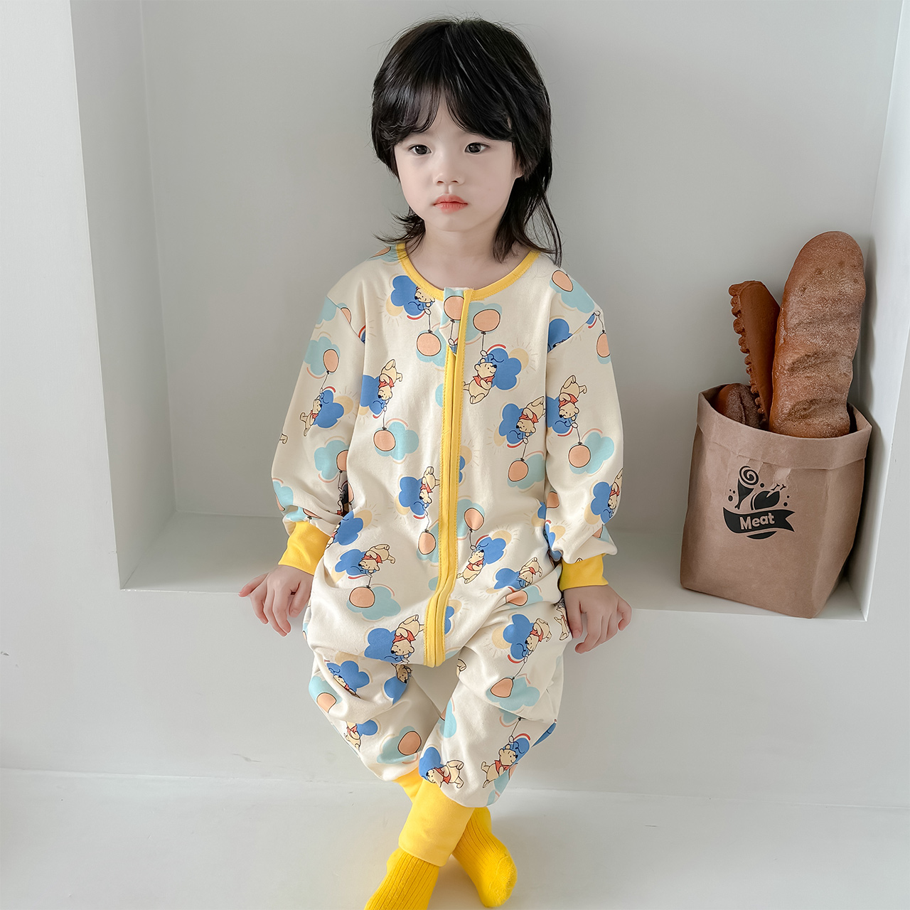 迪士尼儿童连体睡衣薄款男童纯棉长袖春秋款睡袋宝宝家居服防踢被