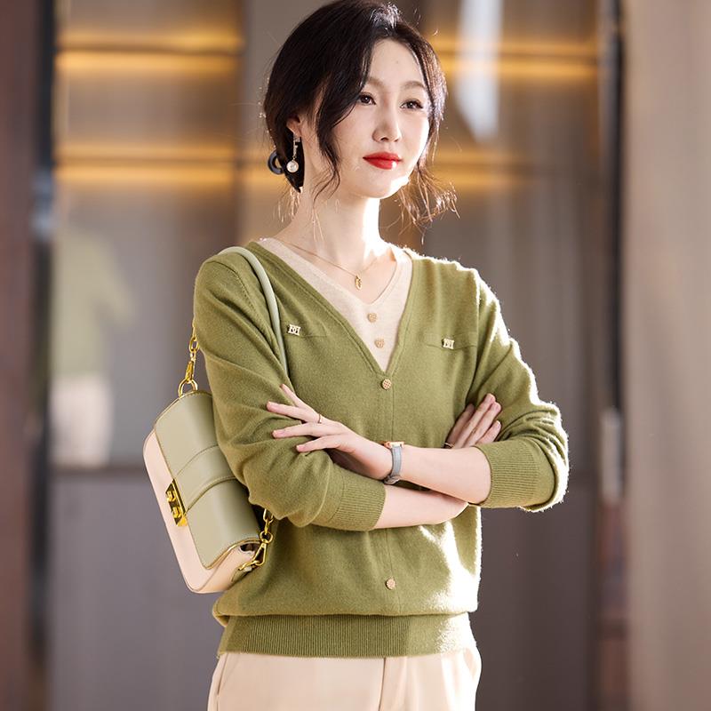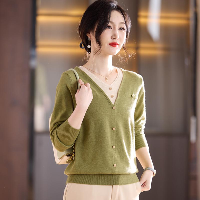 妈妈春装假两件洋气高贵小衫中老年时尚女装阔太太春秋单穿针织衫