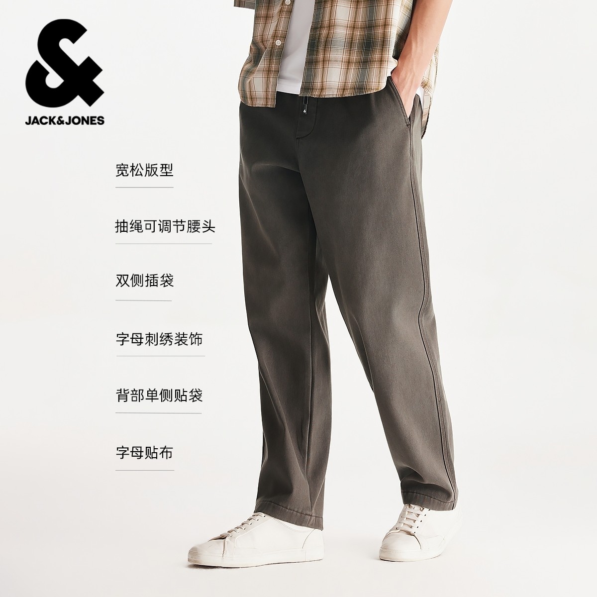 杰克琼斯男装春季休闲裤保暖加绒内里潮流百搭字母刺绣贴布宽松