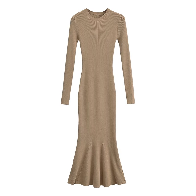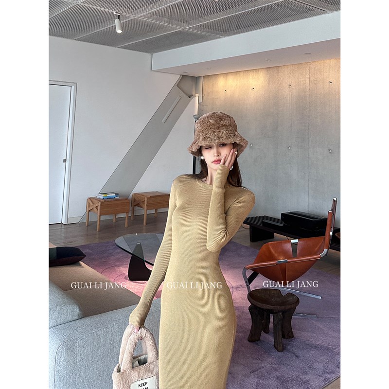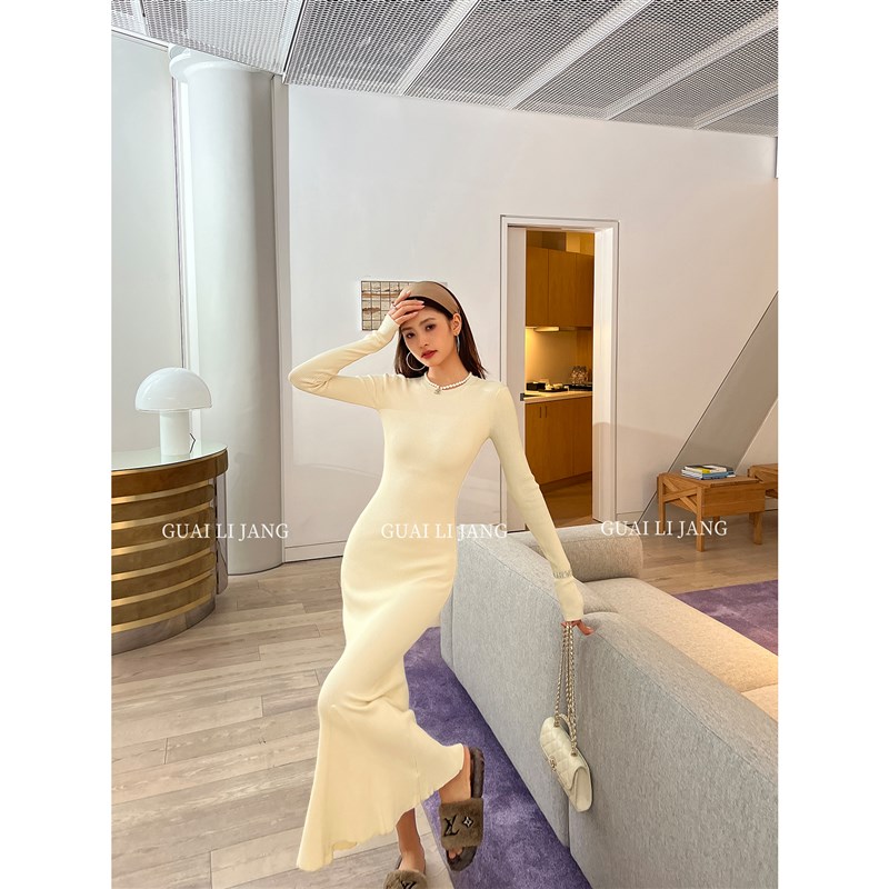 高级感长袖针织连衣裙秋冬修身显瘦御姐毛衣打底鱼尾后妈包臀长裙