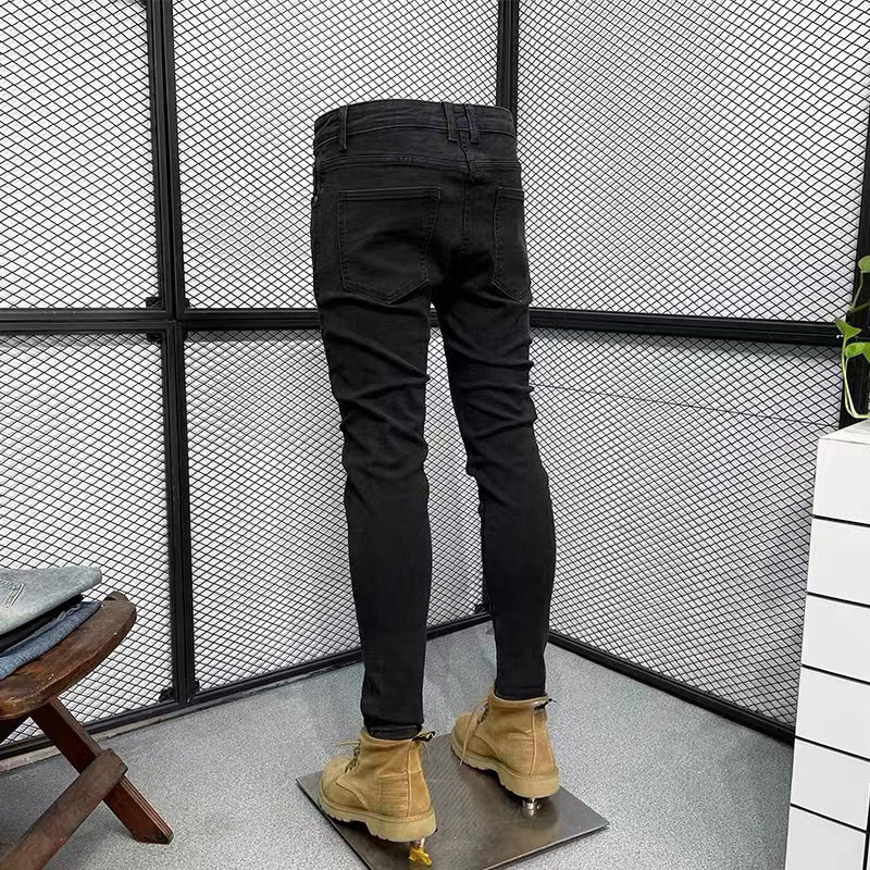 男士牛仔裤春秋季痞帅新款潮牌修身小脚裤潮流时尚简约百搭九分裤