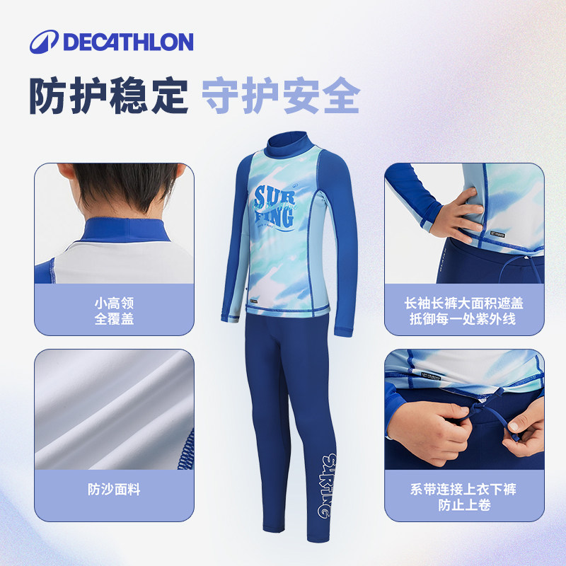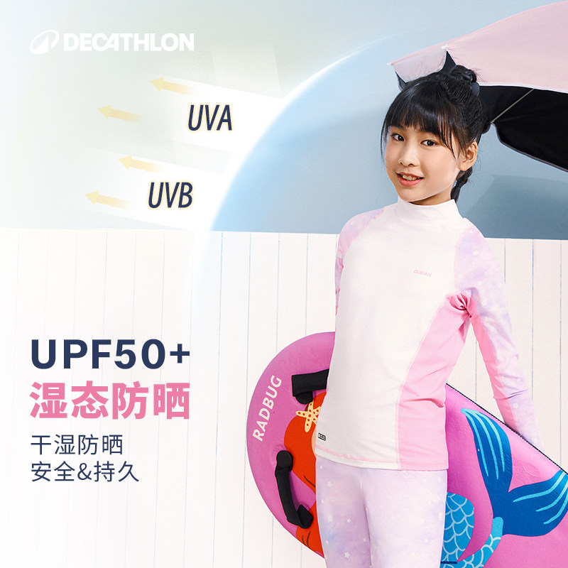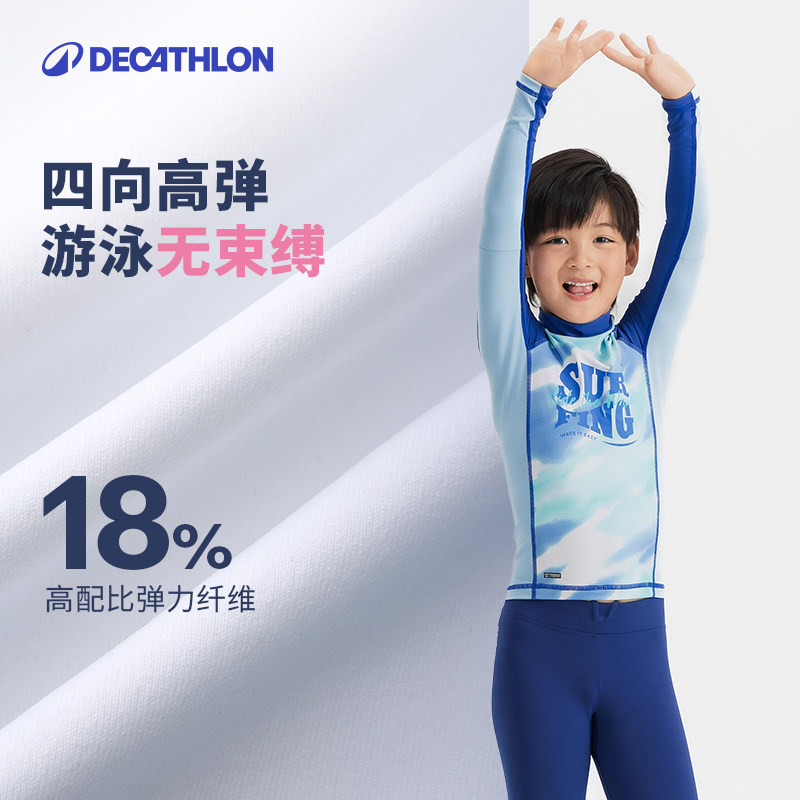 迪卡侬儿童泳衣套装男女童泳衣泳裤长袖防晒运动玩水训练冲浪KIDK