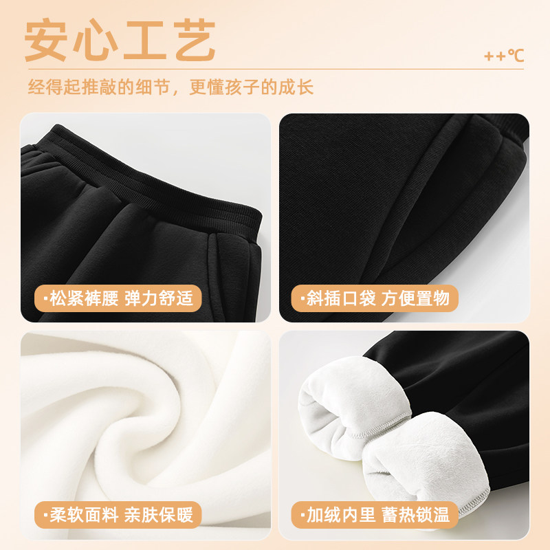 史努比男童套装冬季2025新款上衣儿童卫衣加绒加厚童装中大童冬装
