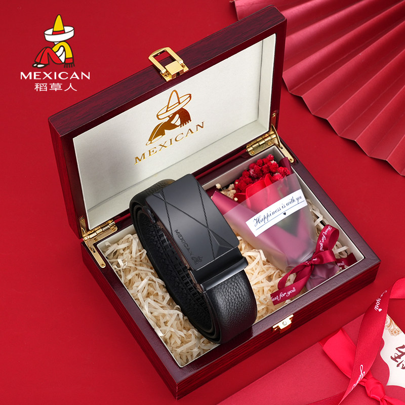 稻草人皮带男真皮男士2025新款自动扣裤腰带潮年轻人牛皮高档正品