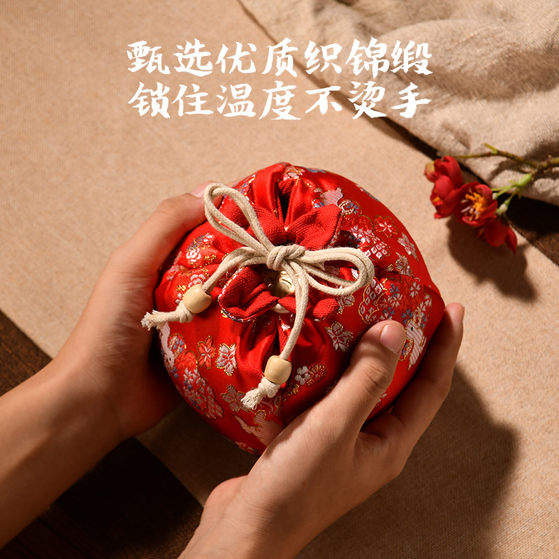 【忆旧】纯手工汤婆子布套热水袋防烫袋国风刺绣原创柿柿如意包布