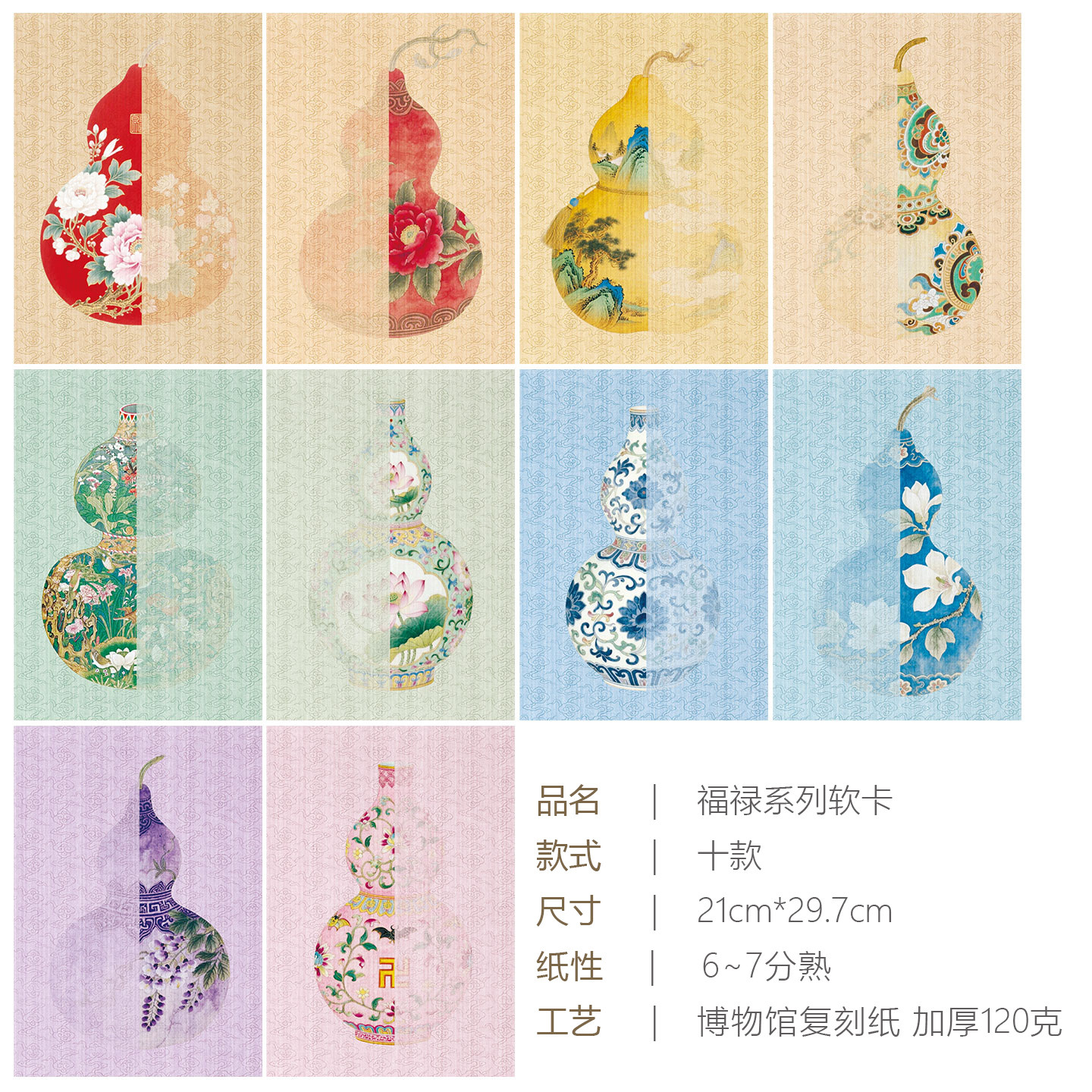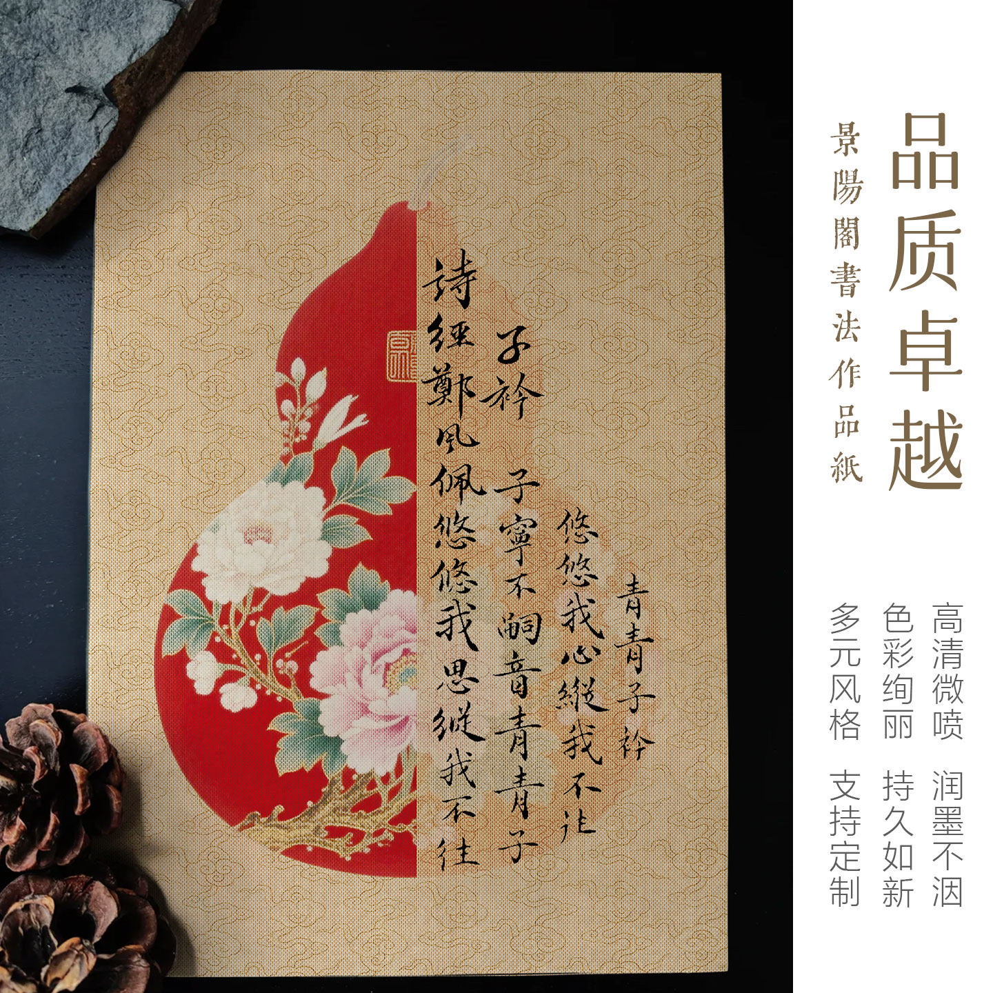 景阳阁微喷宣纸葫芦软卡纸福禄系列a4/a3古风青花瓷书法作品纸加厚半生熟毛笔小楷背景纸免装裱文创书法摆台