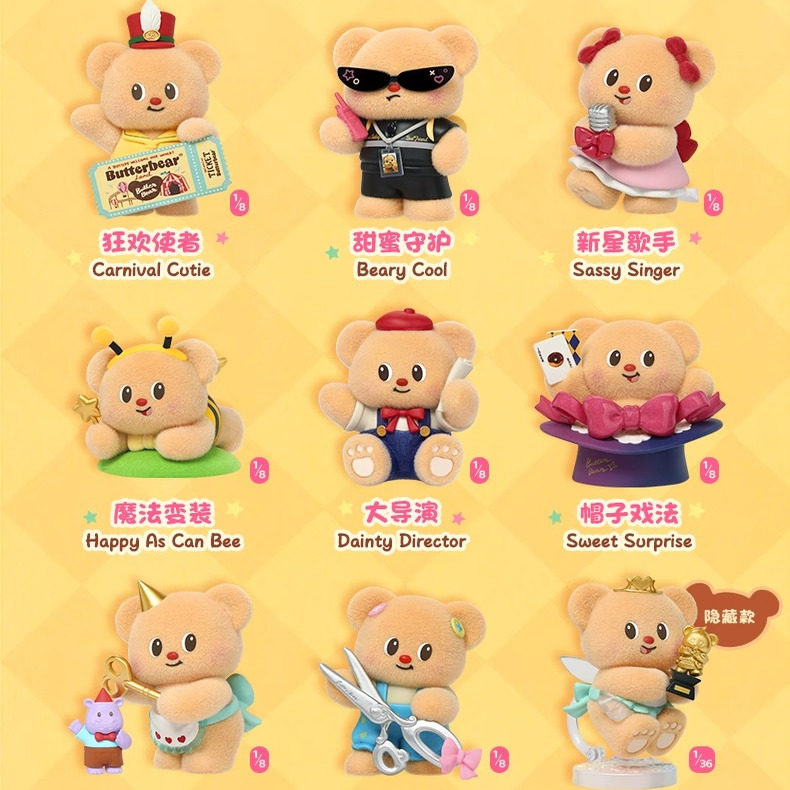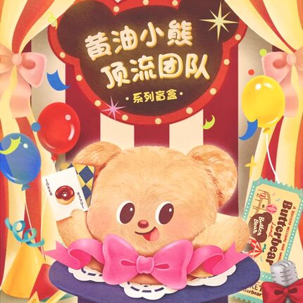 正版玩乐主义黄油小熊盲盒顶流团队系列潮玩手办车载桌面摆件礼物