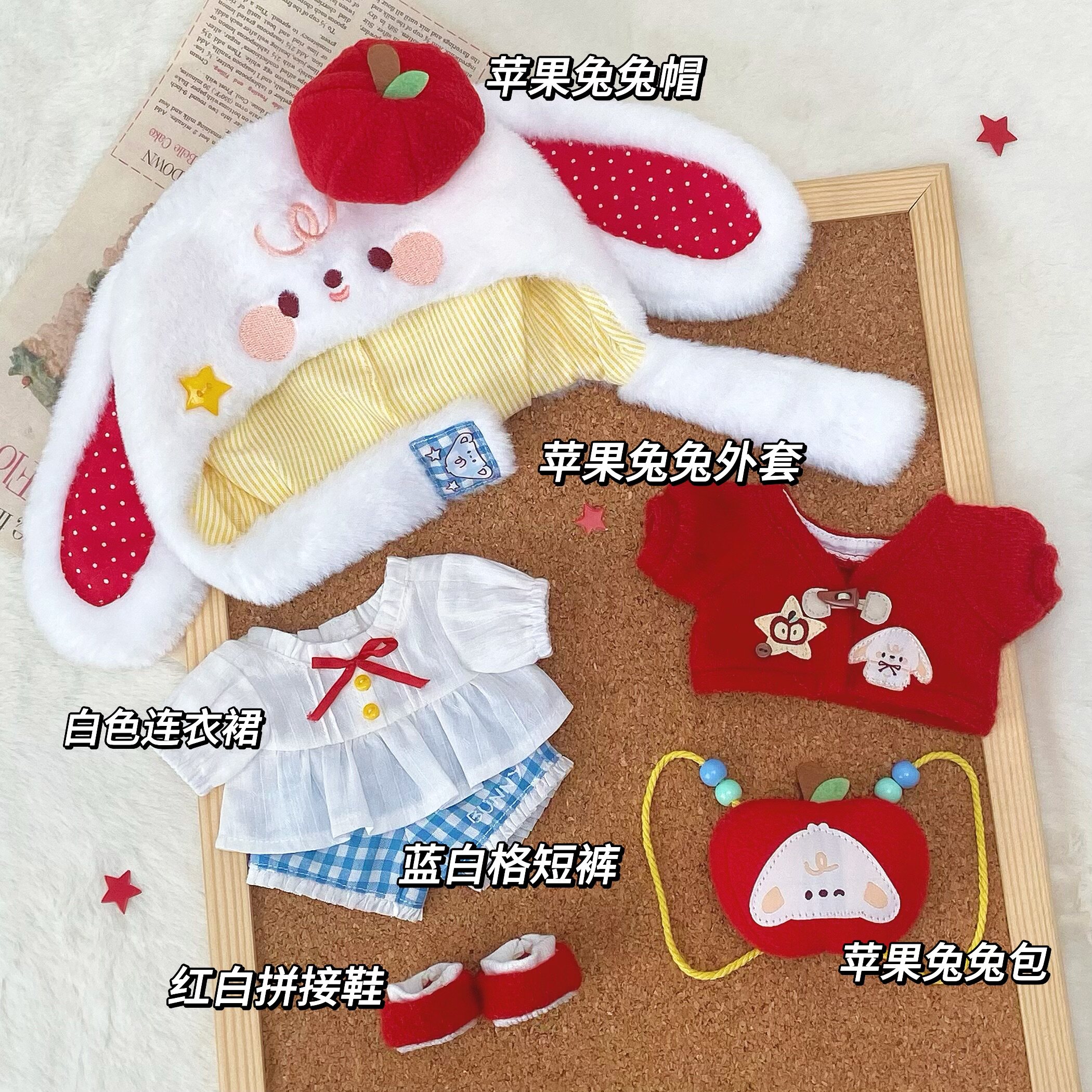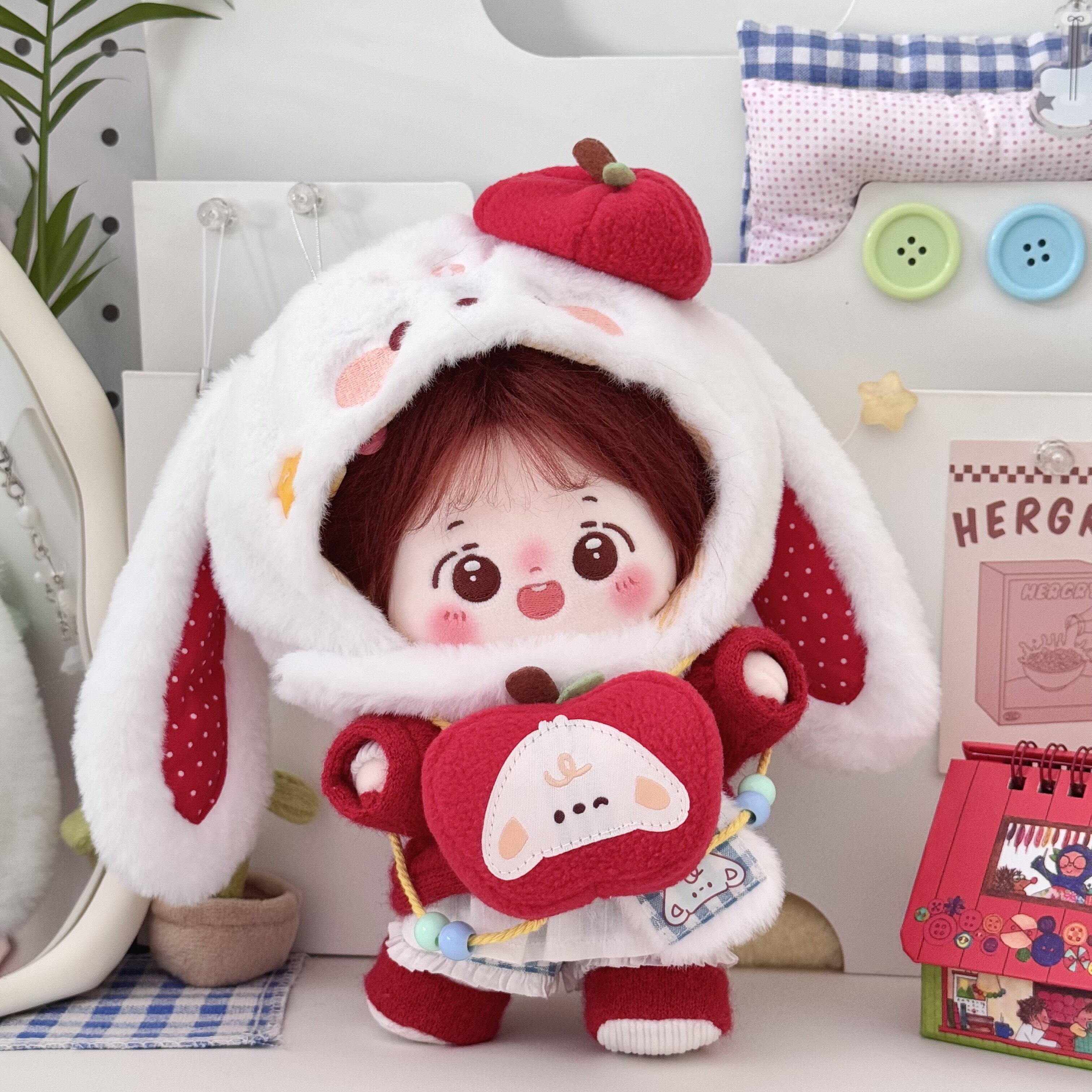 (现货)兔苹糖20cm 红色开衫外套可爱棉花娃娃衣连衣裙套装