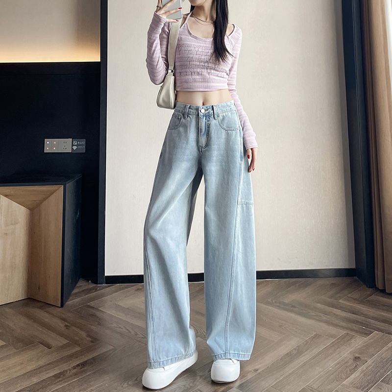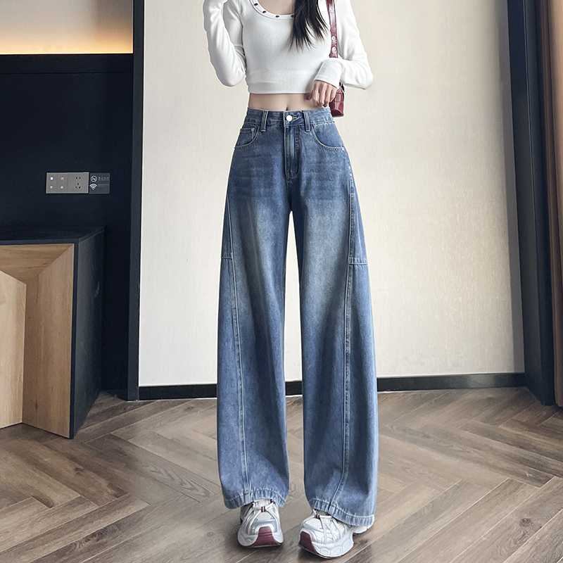 直筒弯刀牛仔裤女夏季2025年新款大码复古宽松垂感遮肉九分阔腿裤