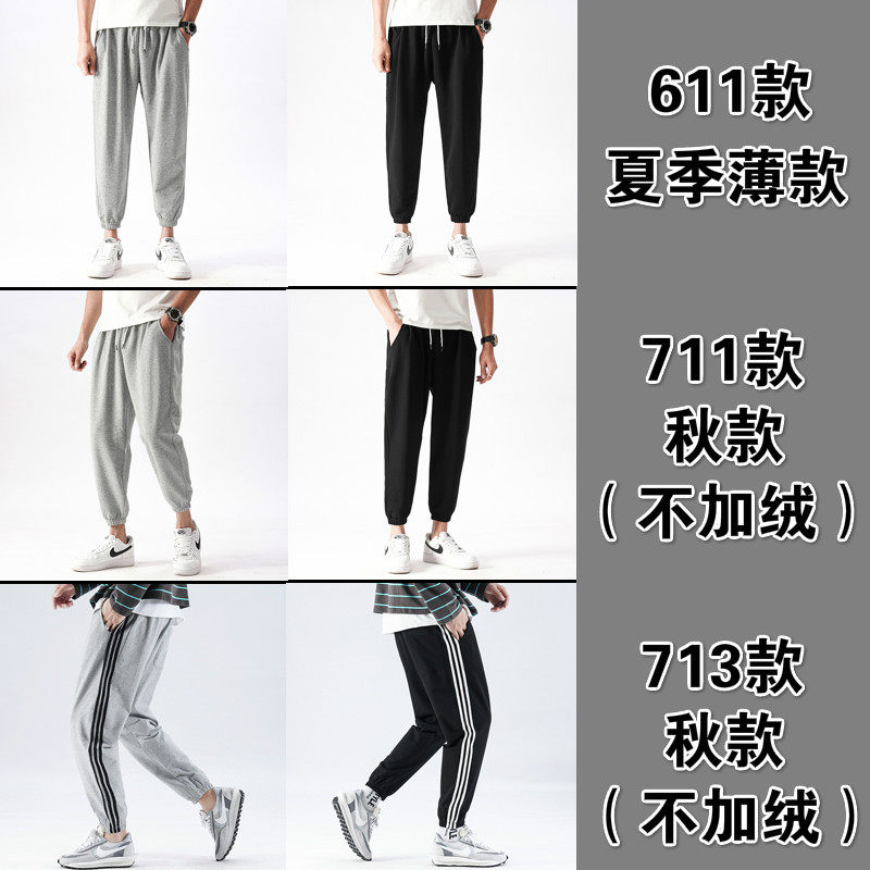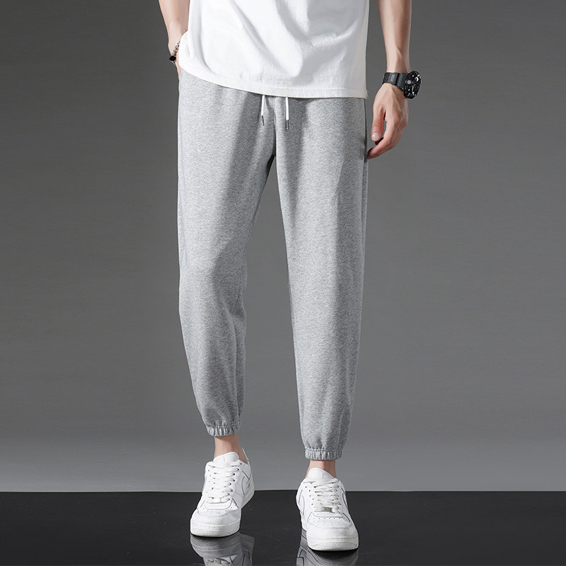 纯棉裤子男夏季宽松薄款运动裤小脚卫裤8八分灰色休闲束脚九分裤