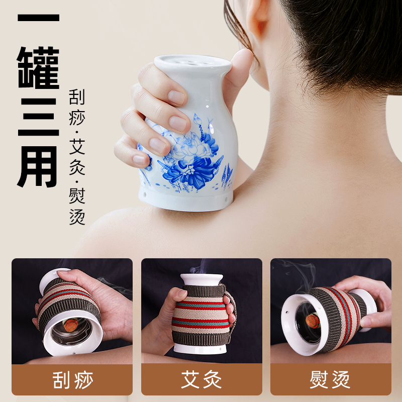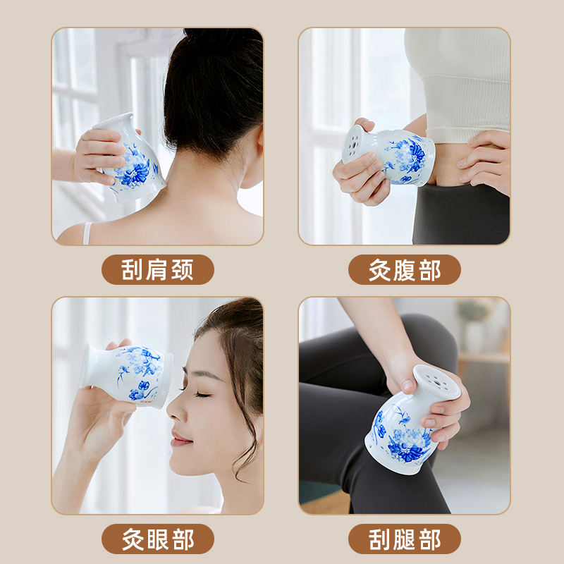 艾灸罐陶瓷艾炙器具刮痧一体杯艾灸盒随身灸家用养生馆温通刮痧罐