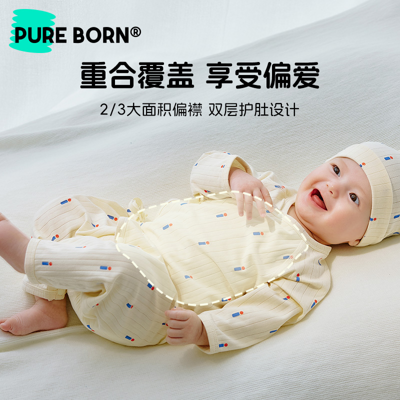 博睿恩新生儿系带爬服初生婴儿长绒棉柔软透气连体衣服四季可穿