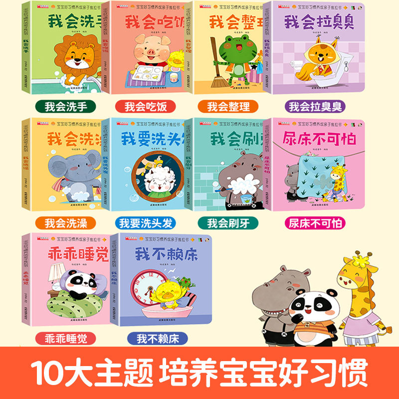 宝宝好习惯养成亲子推拉书翻翻机关书绘本0到3-6岁 1一2-3岁宝宝书籍早教书益智启蒙 一两半岁三儿童绘本硬壳撕不烂睡前读物故事书
