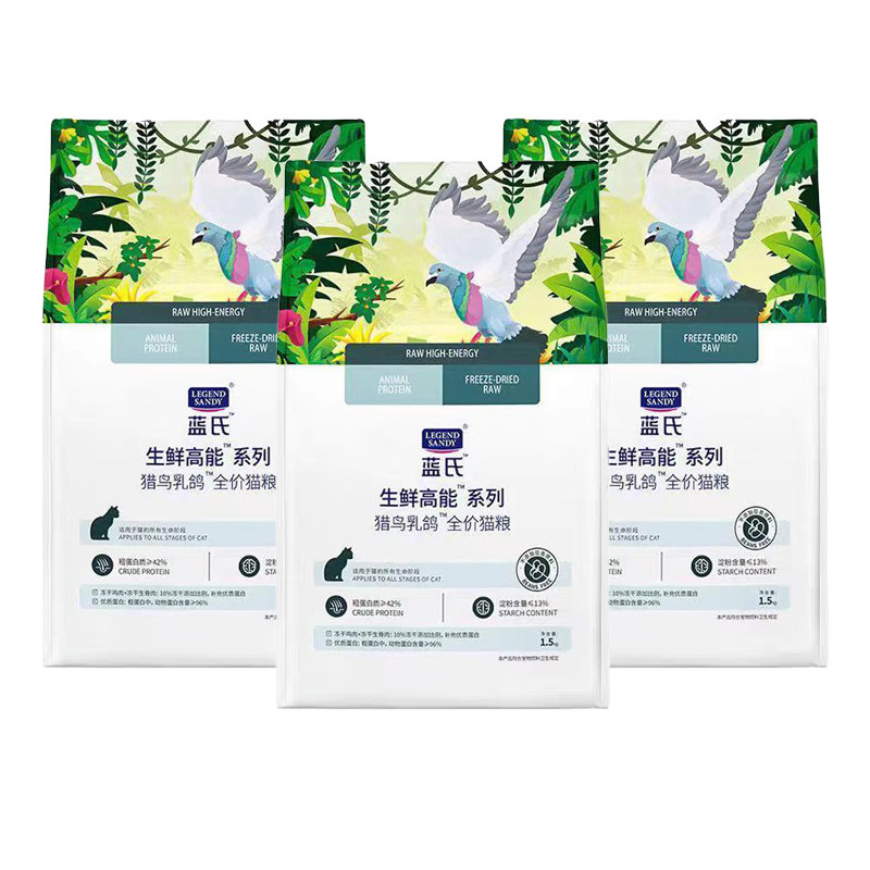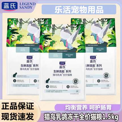 蓝氏猎鸟乳鸽猫粮1.5kg 无谷冻干增肥发腮成幼猫全价生骨肉猫粮