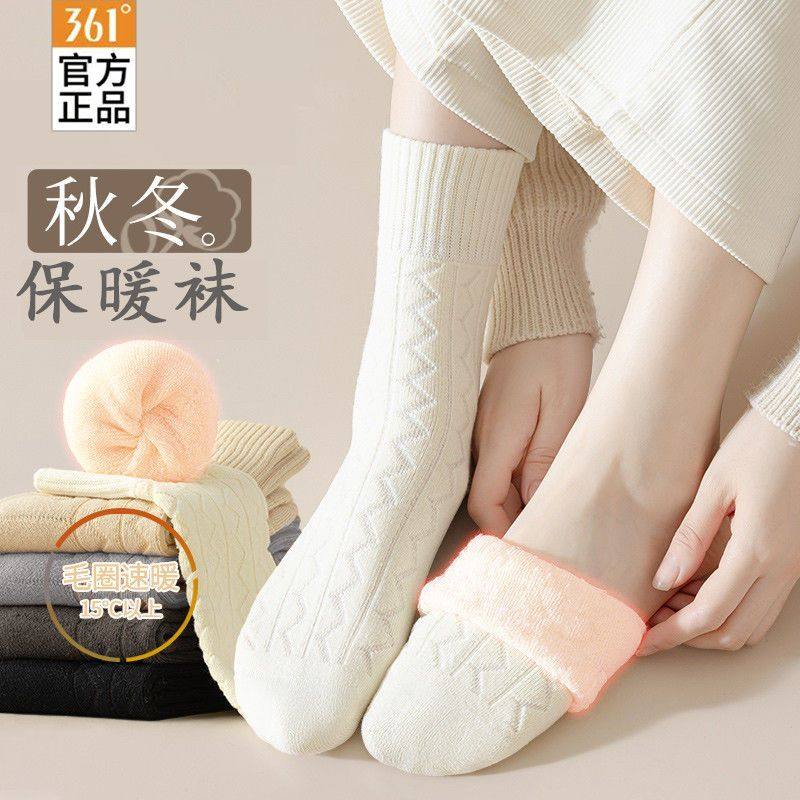 361正品男女秋冬加厚款毛圈中筒棉袜子保暖防寒加绒休闲女士长袜