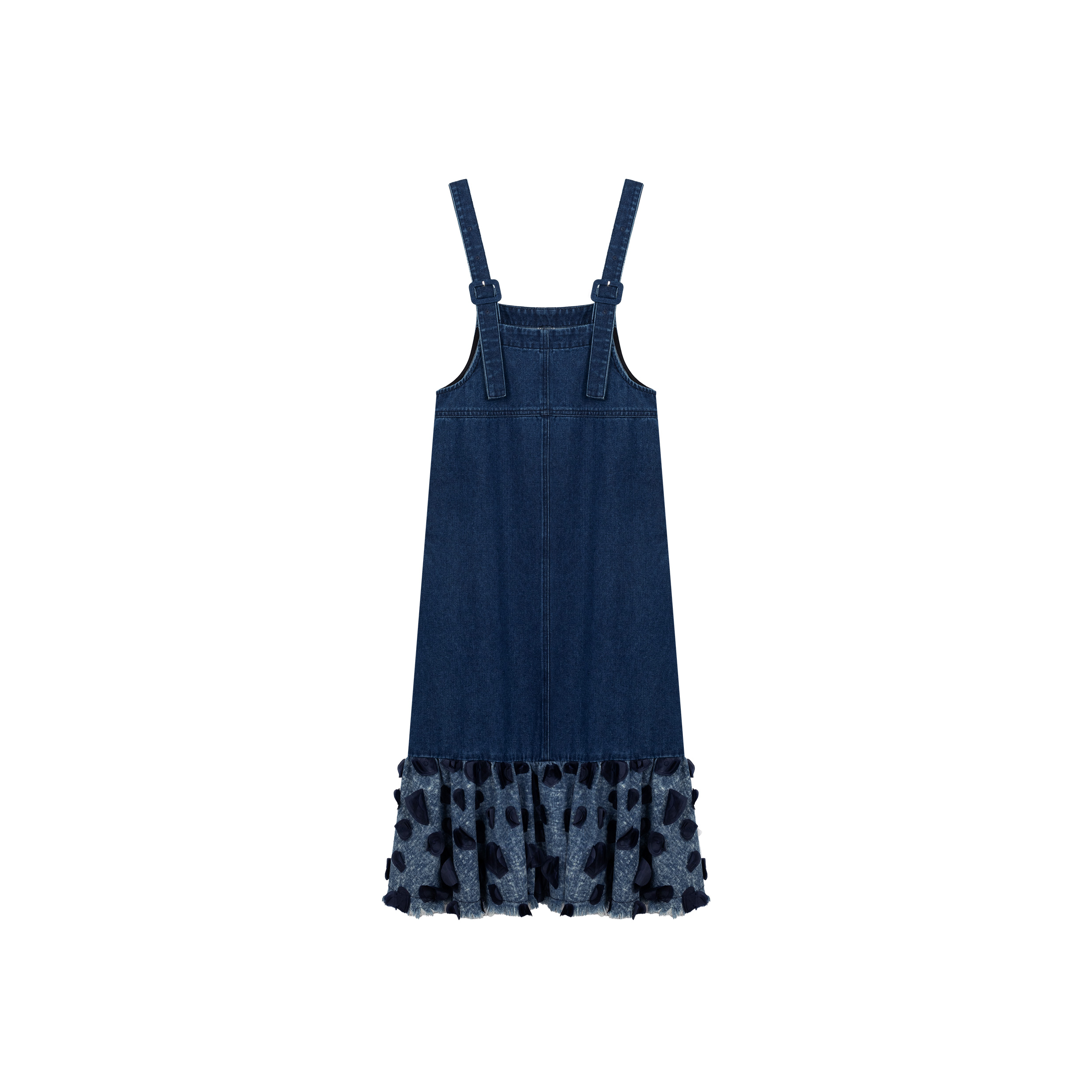 乔拉【重瓣蔷薇】设计感拼接蓝色牛仔吊带连衣裙女夏季慵懒感长裙